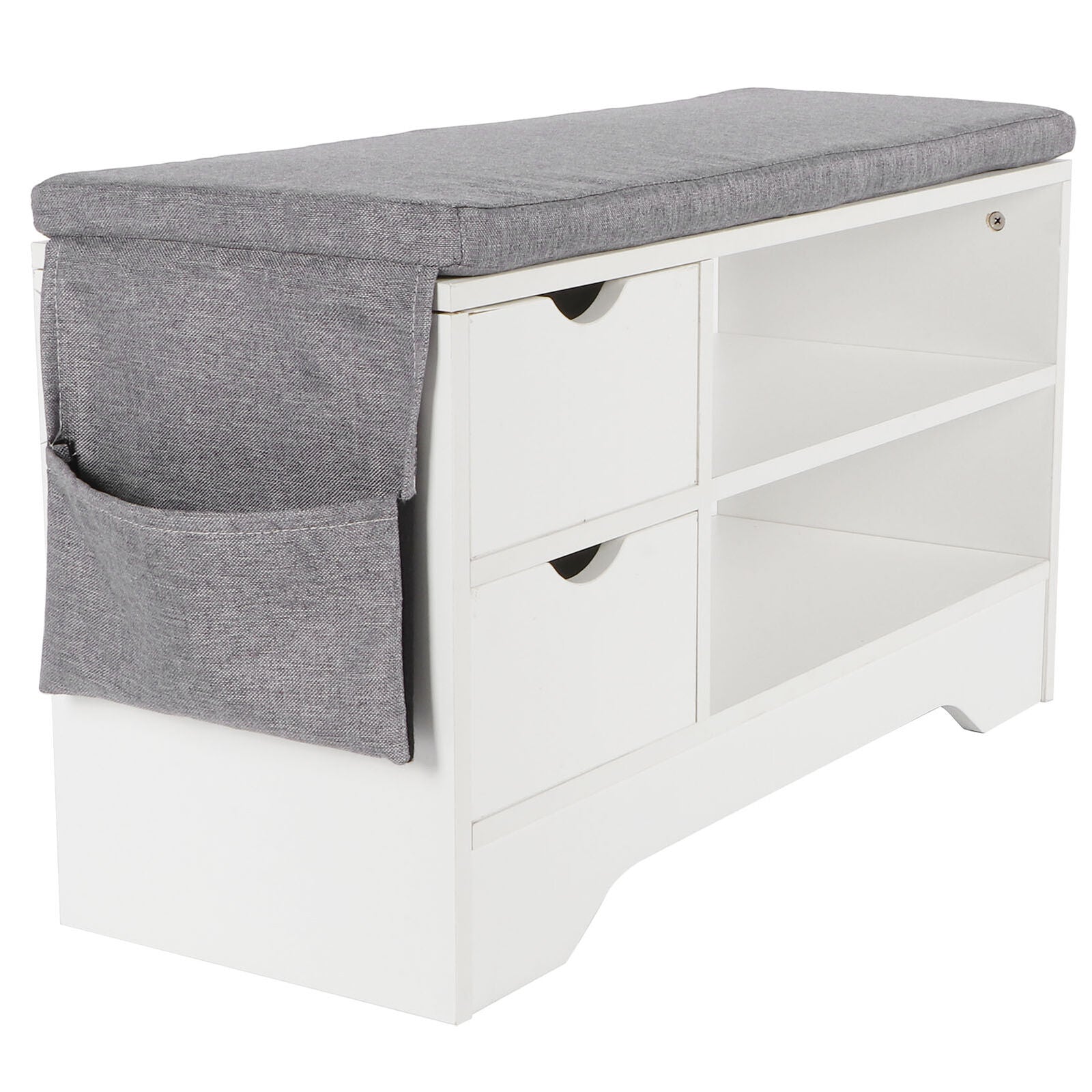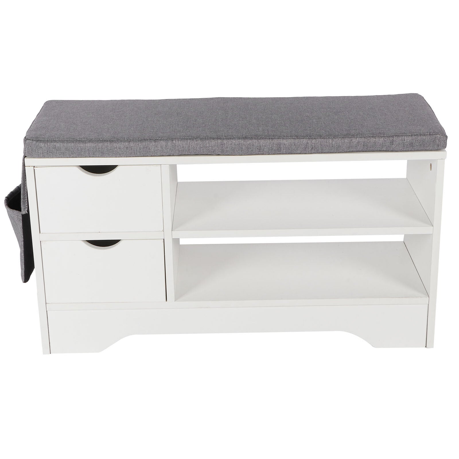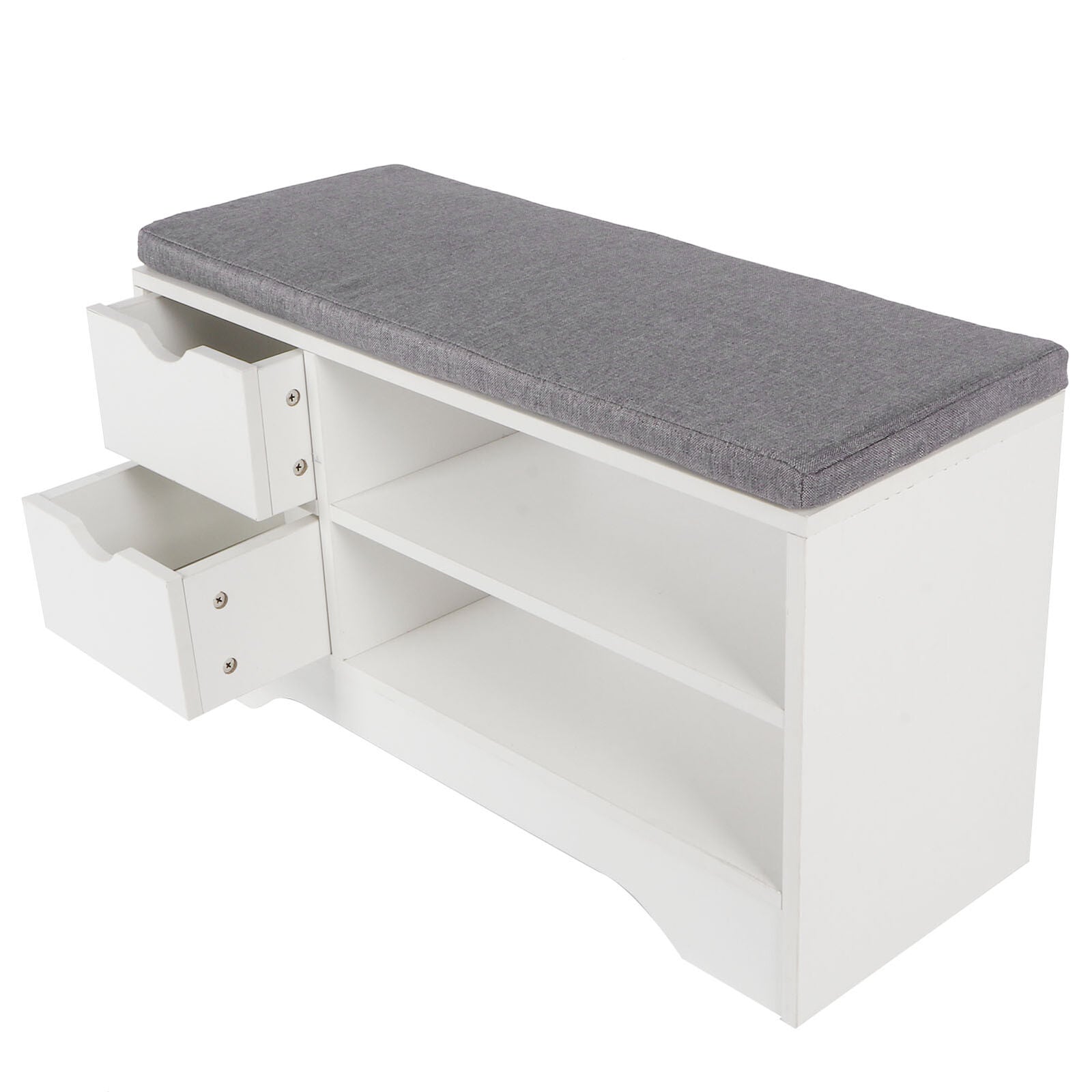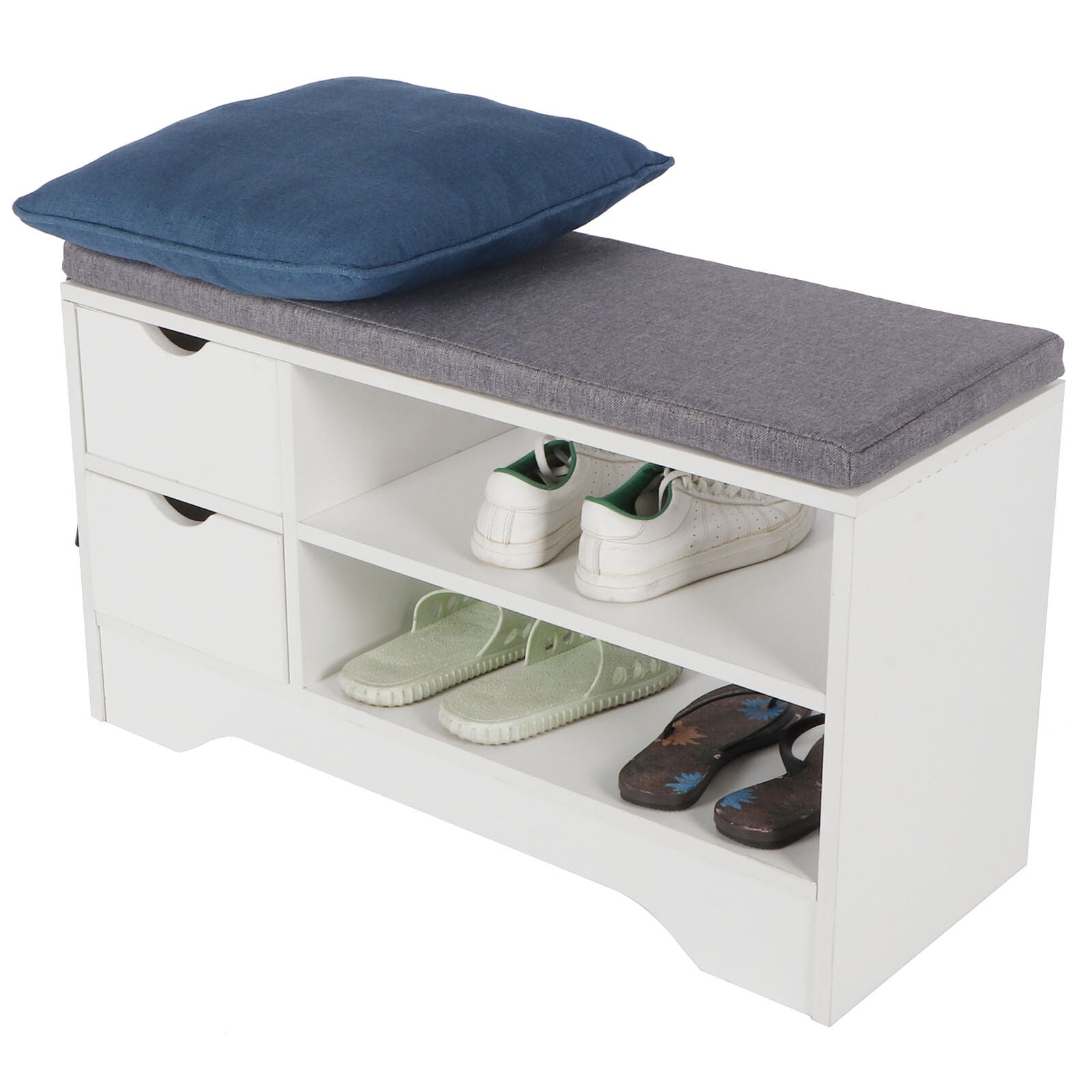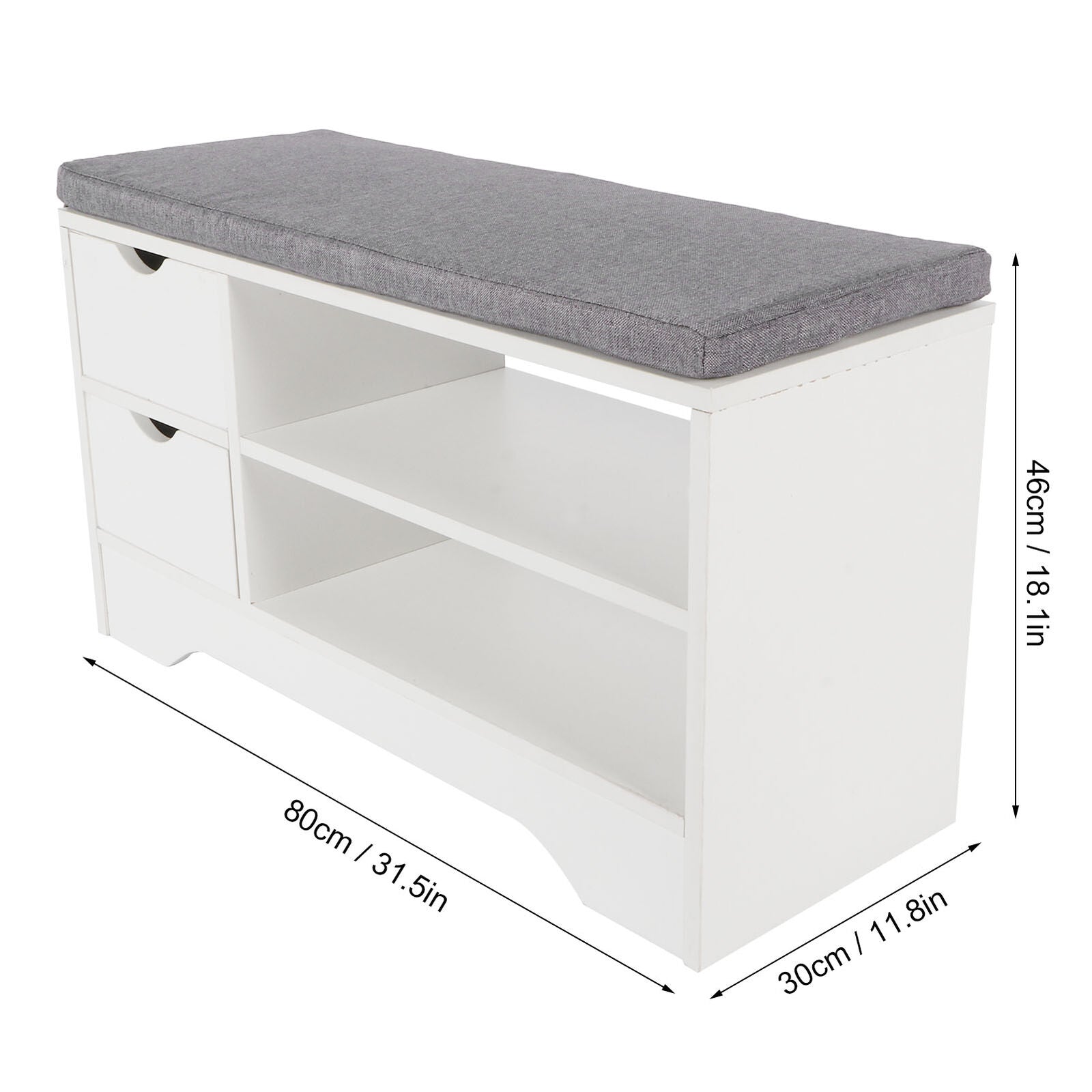 Shoe Bench Shoes Storage Rack Wooden Cabinet Padded Seat Cushion Hallway White