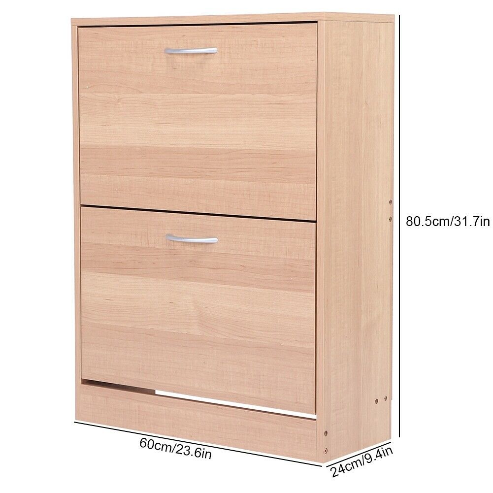 Shoe Cabinet Storage Cupboard Footwear Stand Rack Wooden Unit With 2 Flip Door