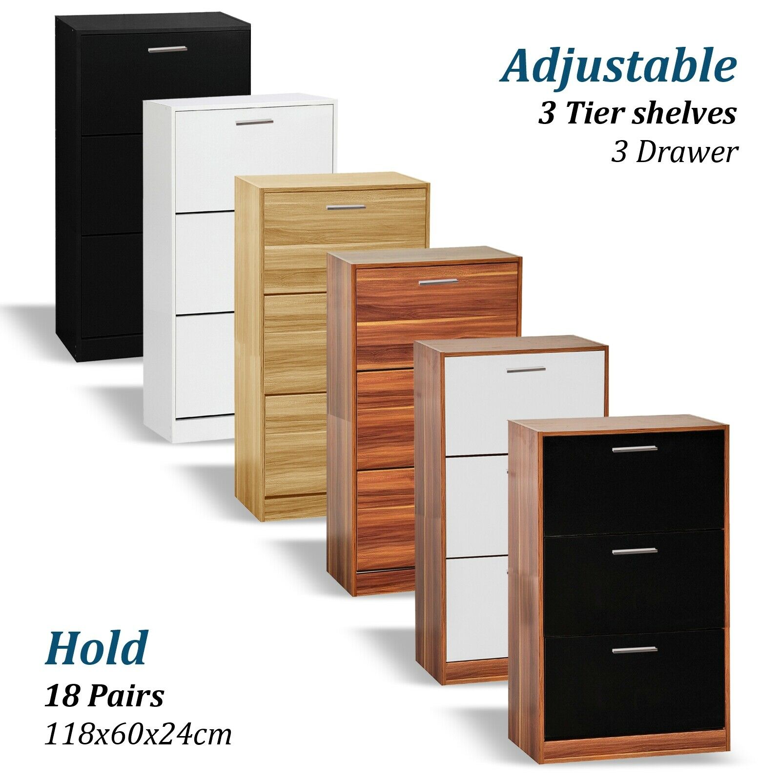 - Shoe Cabinet Storage Unit Wooden Shoe Rack Stand Cupboard 2 3 Drawer Organiser