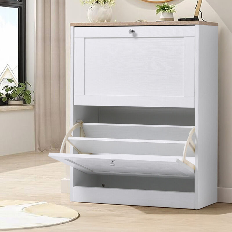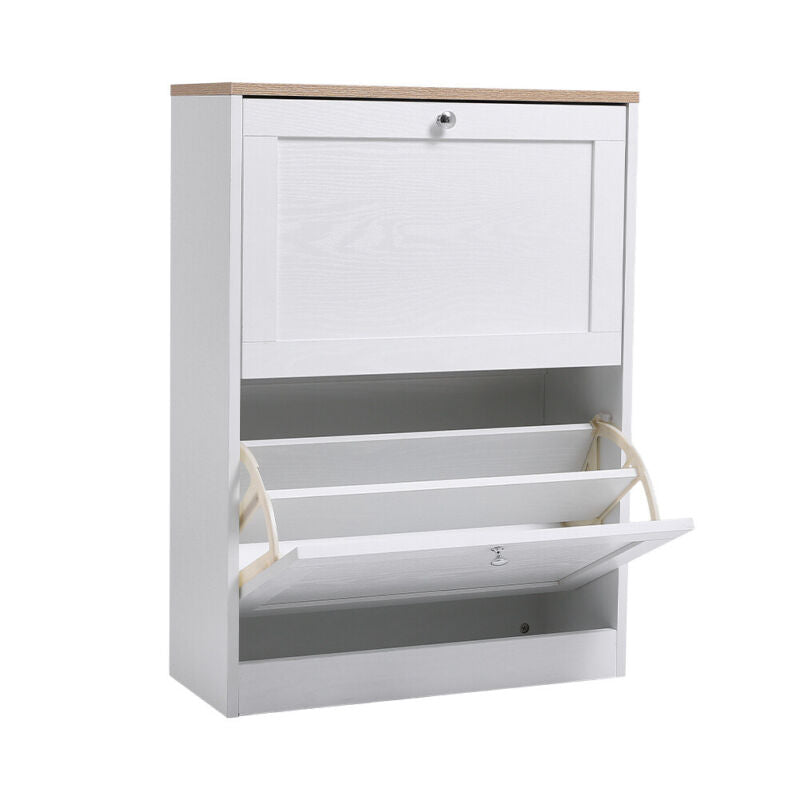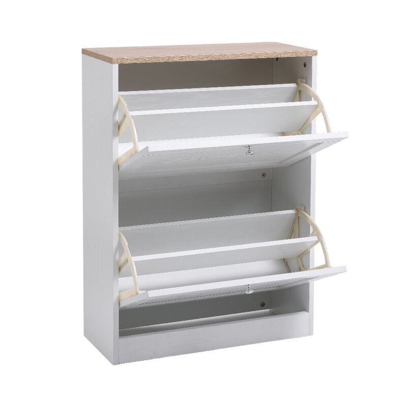 Shoe Cabinet Storage Wooden 4 Hidden Shelves Footwear Organiser Cupboard Unit UK