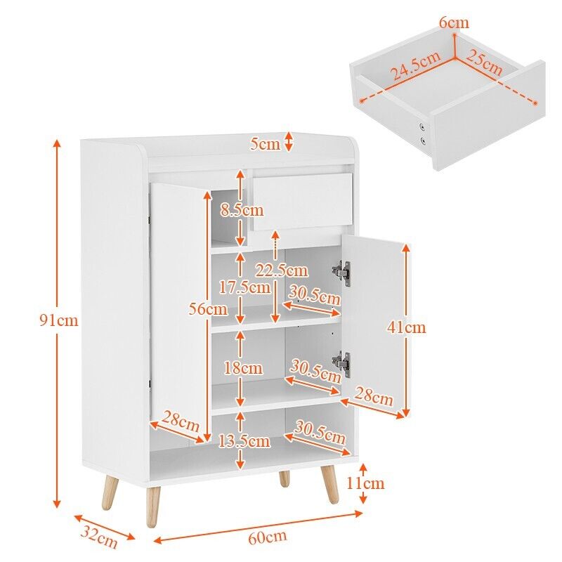 Shoe Cabinet white Storage Rack Living Room Wood 1 dwawer 2 Door 4 Shelf