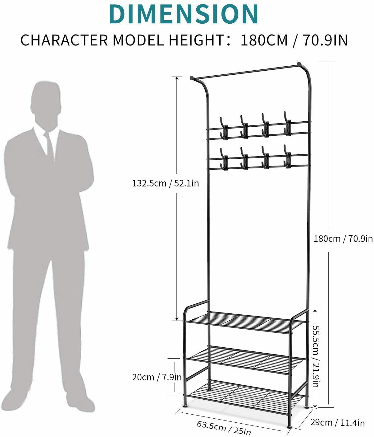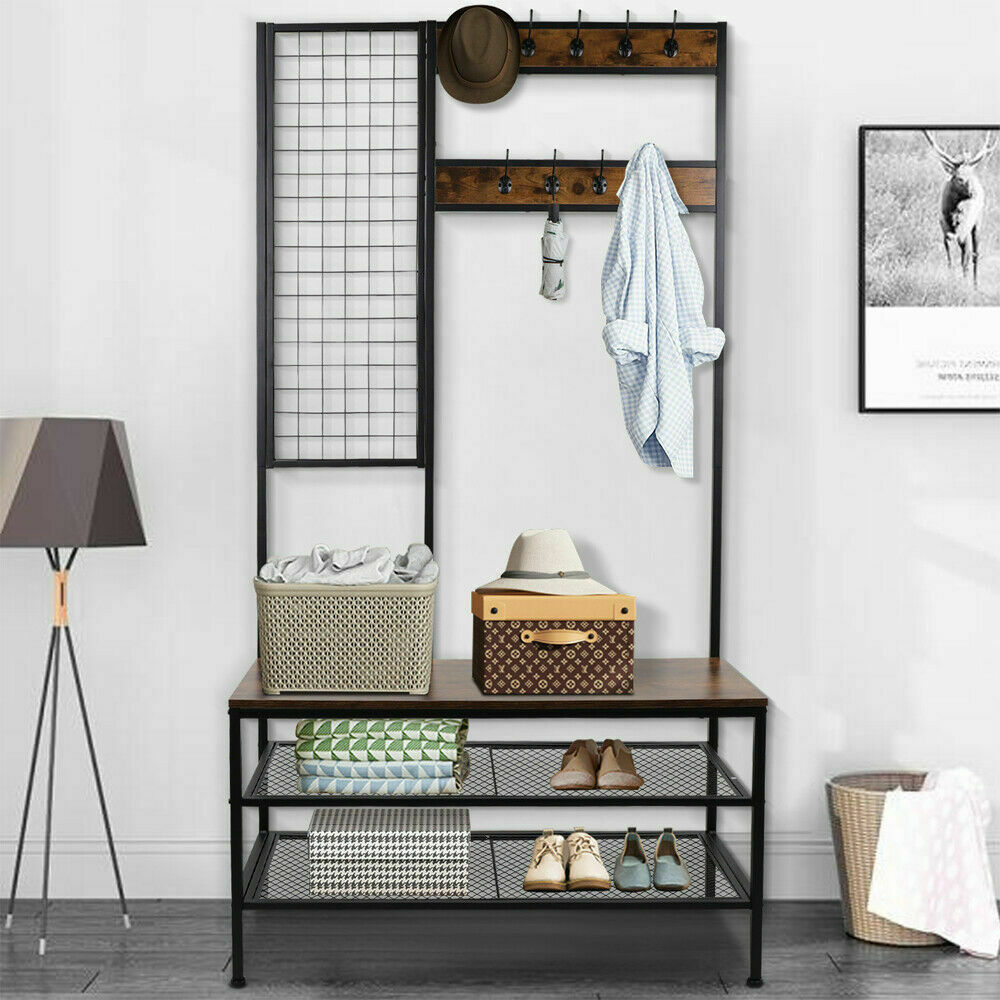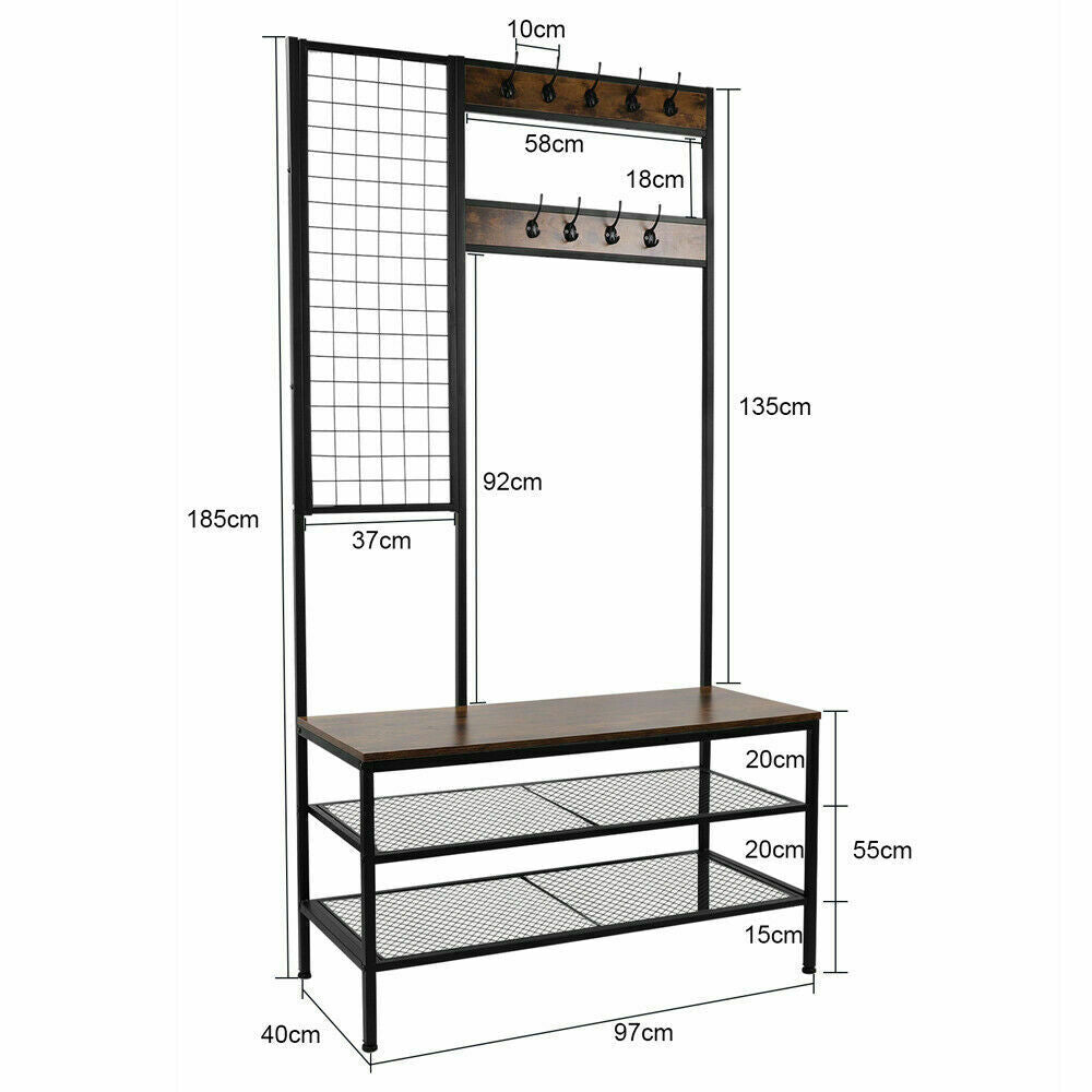 Shoe Rack and Coat Stand Clothes Rail Coat Rack Hall Tree with Metal 12 Hooks UK