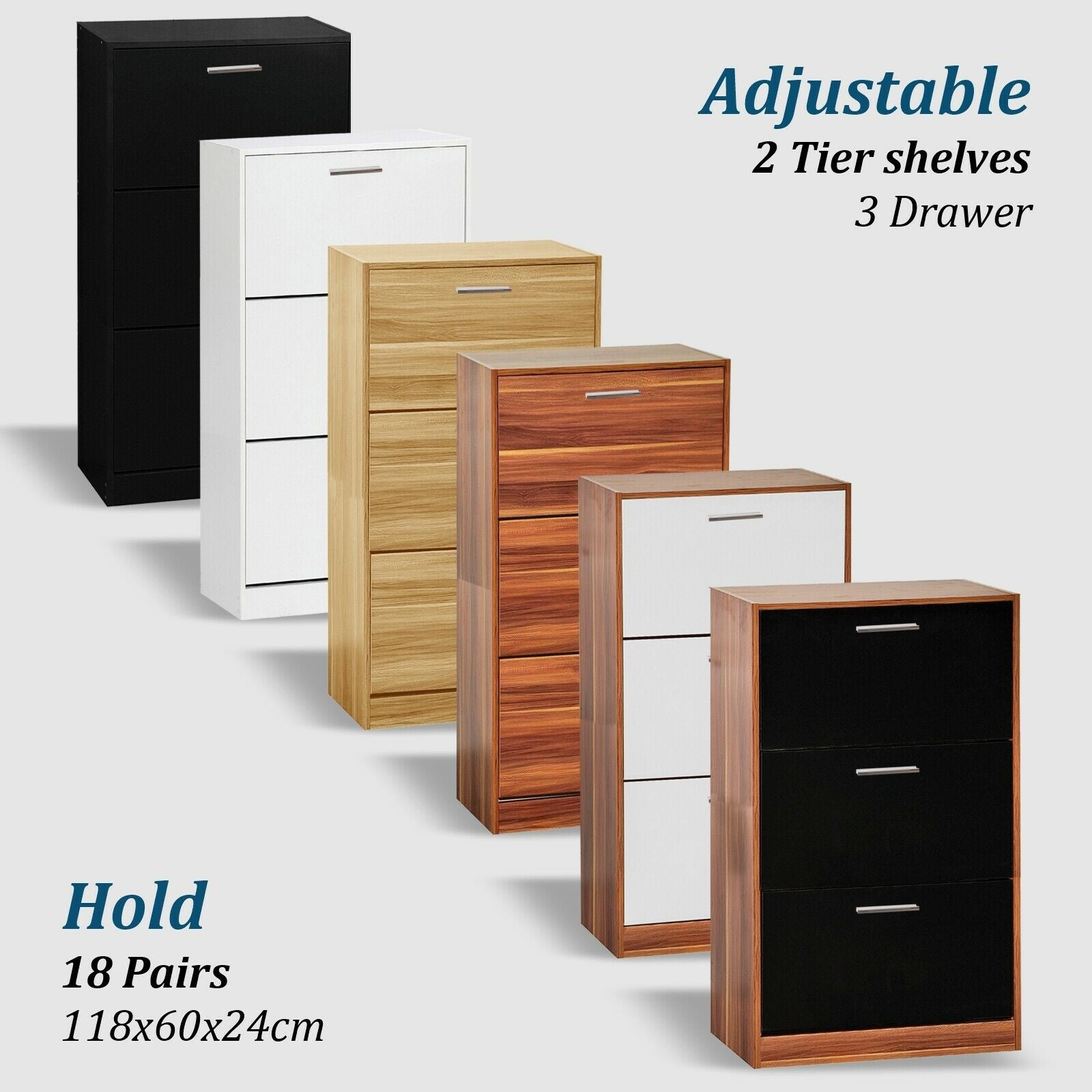 Shoe Rack Shoes Storage Cabinet Wooden Unit Stand Cupboard 2/3 Drawer Organiser