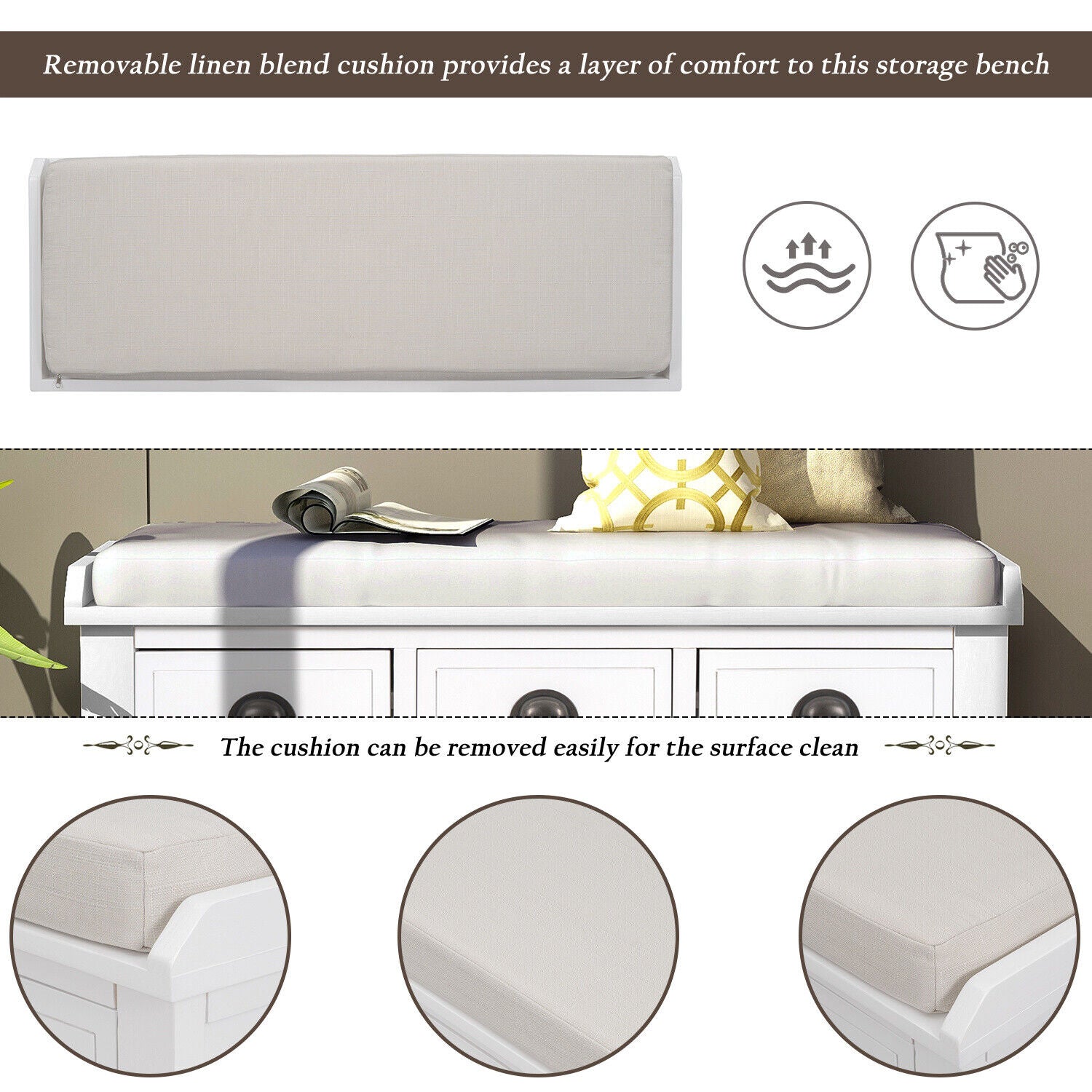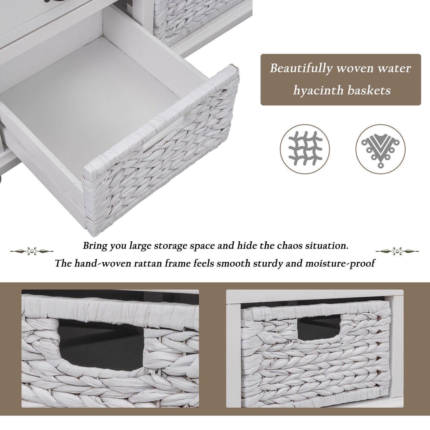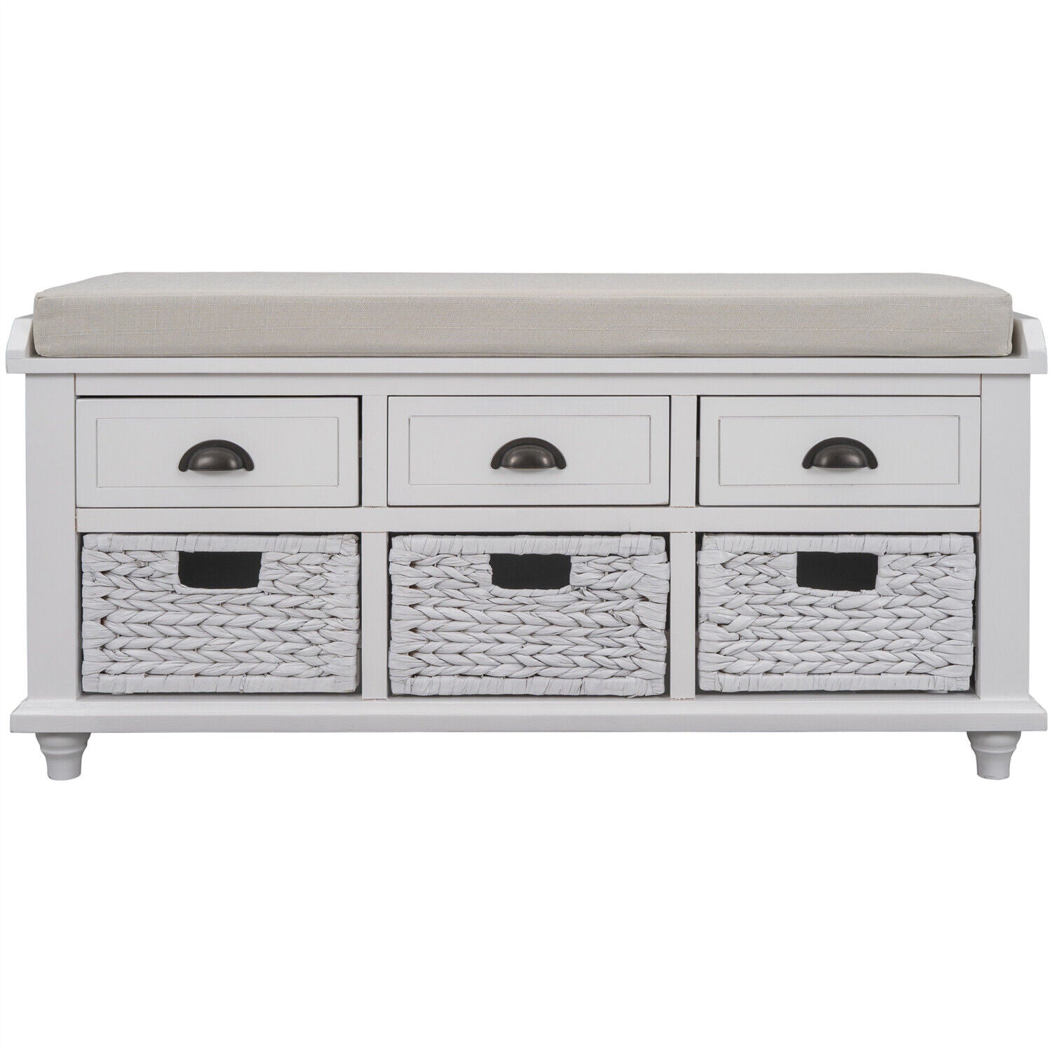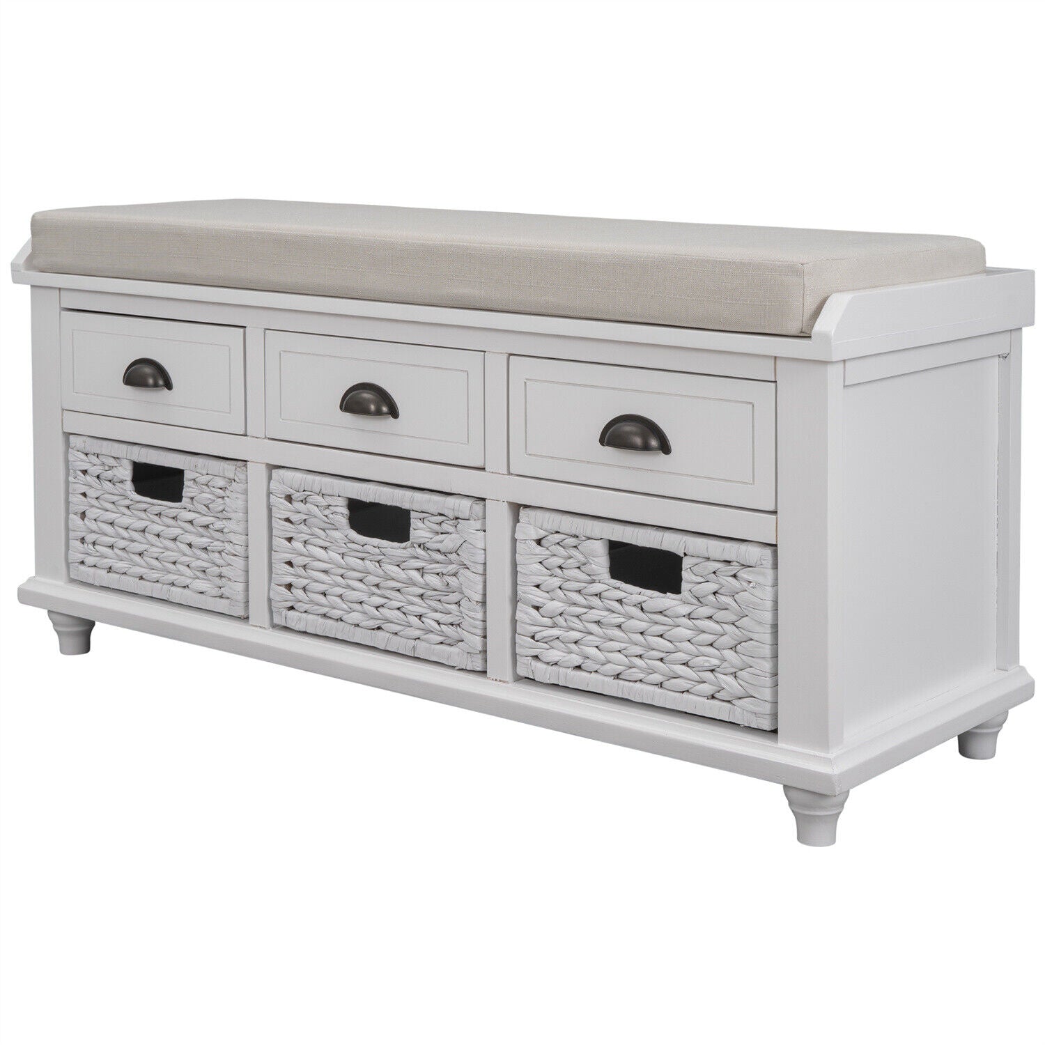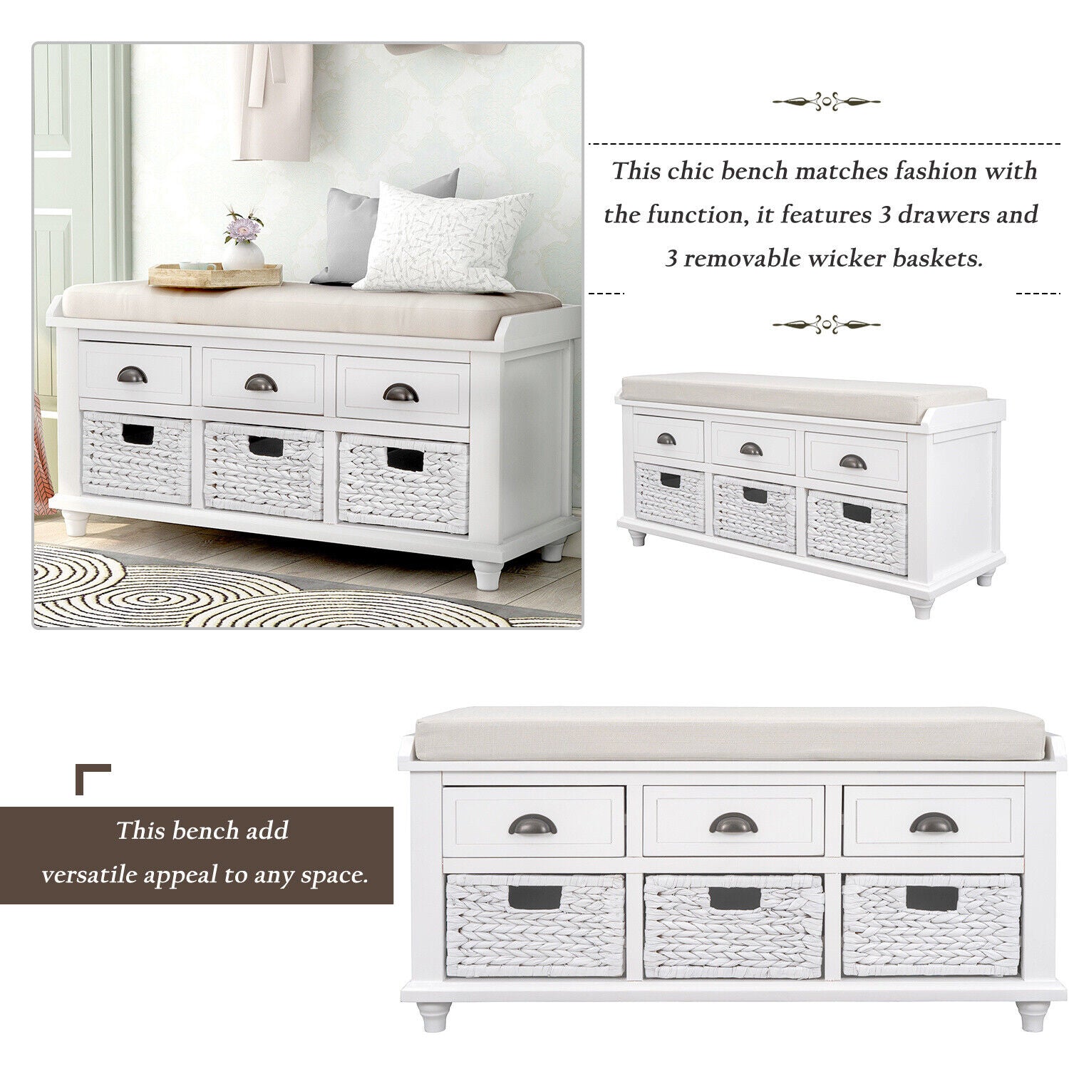 Shoe Storage Bench with 3 Drawers and 3 Rattan Baskets for Living Room Entryway