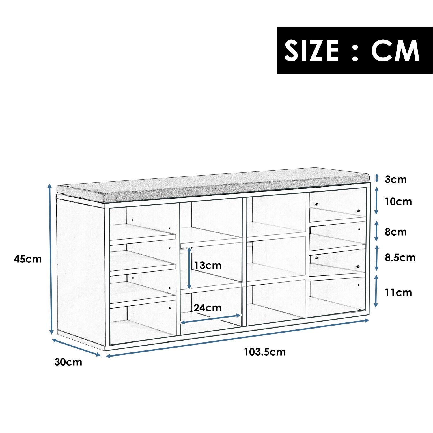Shoe Storage Rack Cabinet Shoe Bench Shoe Shelf 14 Compartments with Cushions