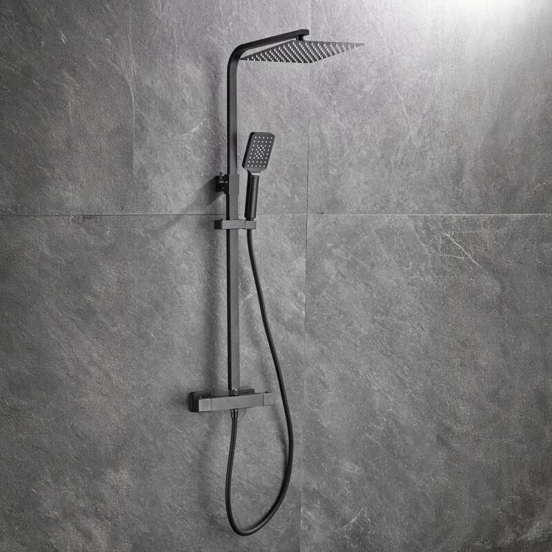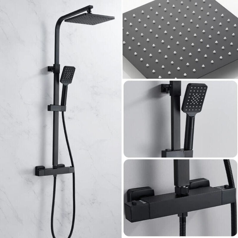 Shower Kit Twin Head 2 Mixer Shower Heads Rail Hose Riser Square Bathroom Set