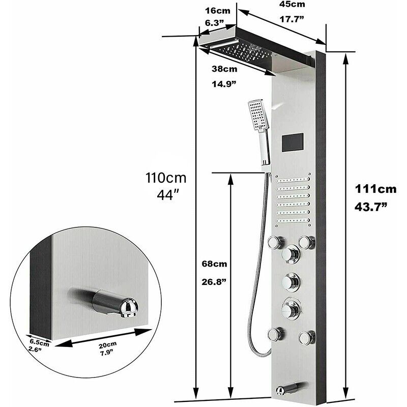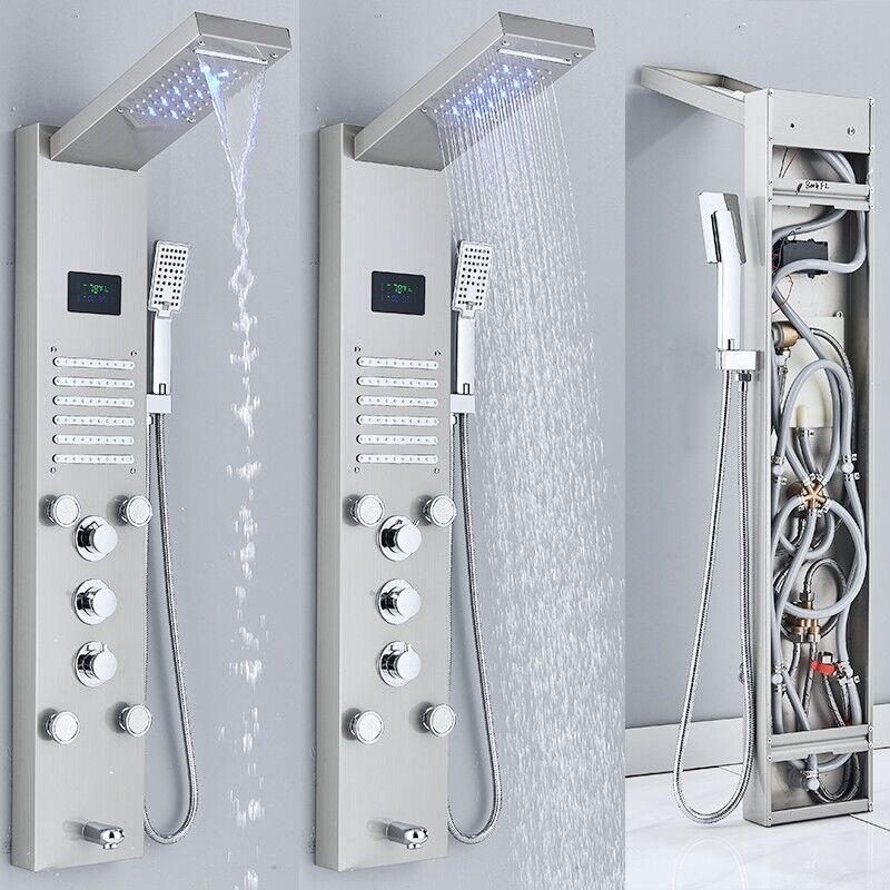 Shower Panel Column Tower Waterfall Rain Massage Body Jet Stainless Steel System