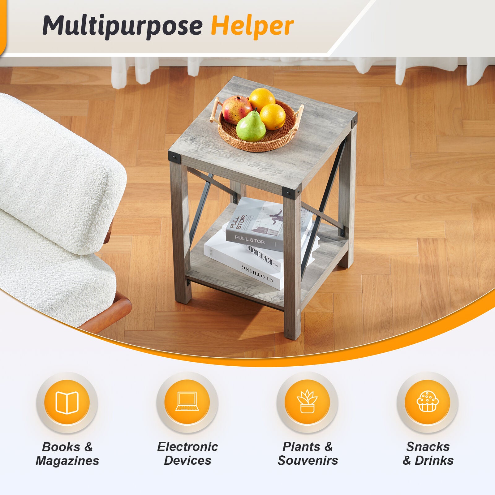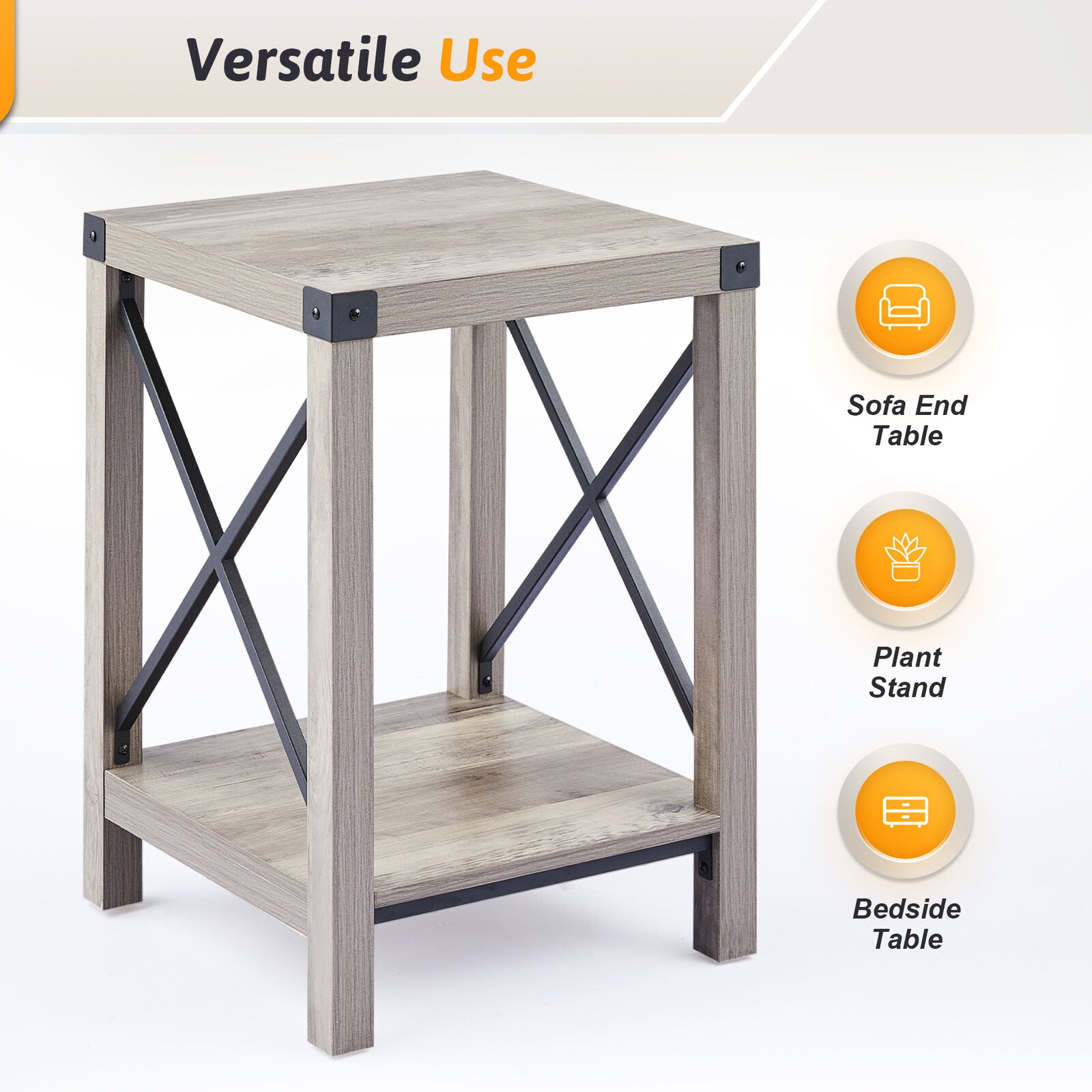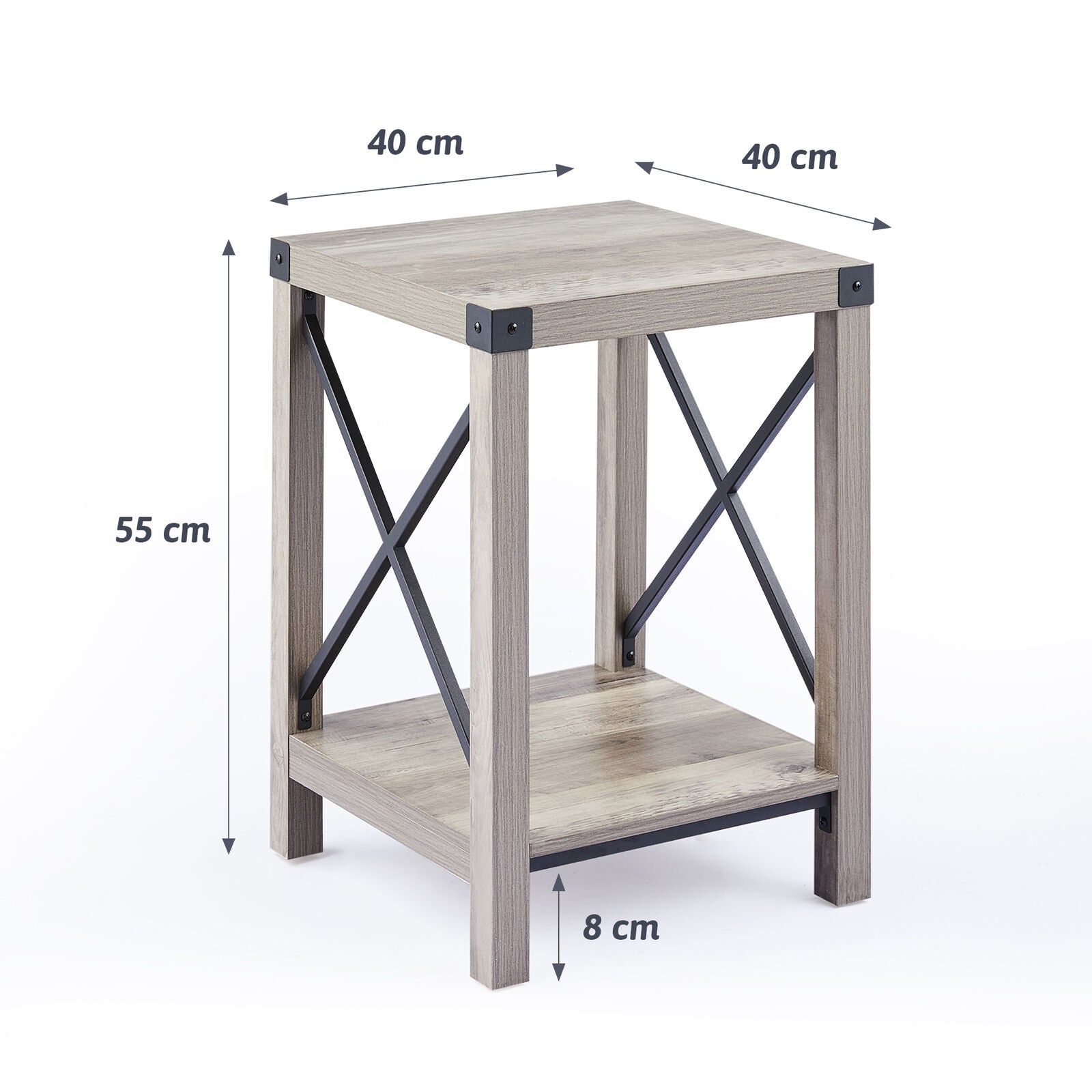 Side & End Table w Shelf Metal X Frames & Corners Square Bedside Table Driftwood