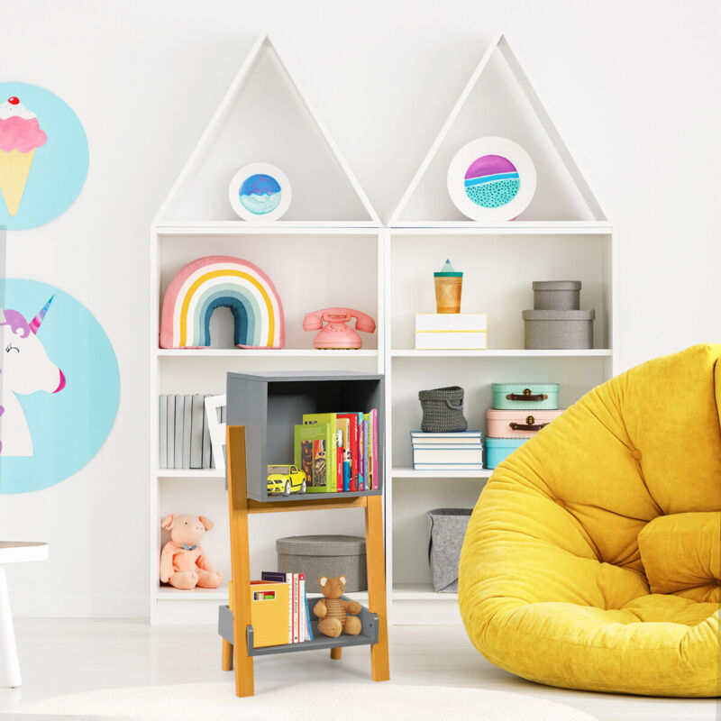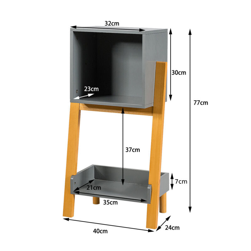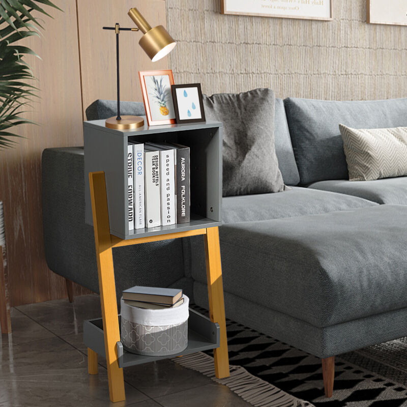 Side End Table Wooden Compact Storage Bookcase with Open Drawer and Bottom Shelf
