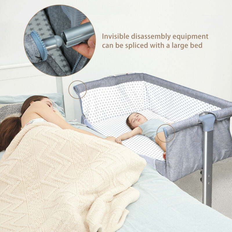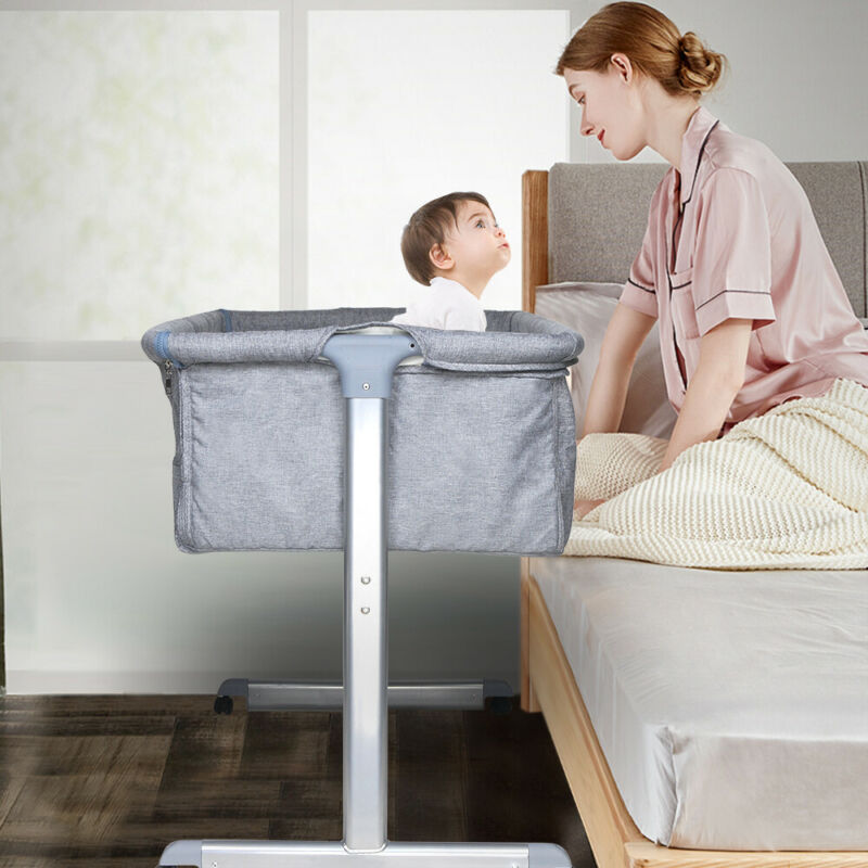 Side Sleeping Bedside Crib Baby Crib Cot bed with Washable Mattress & Wheels