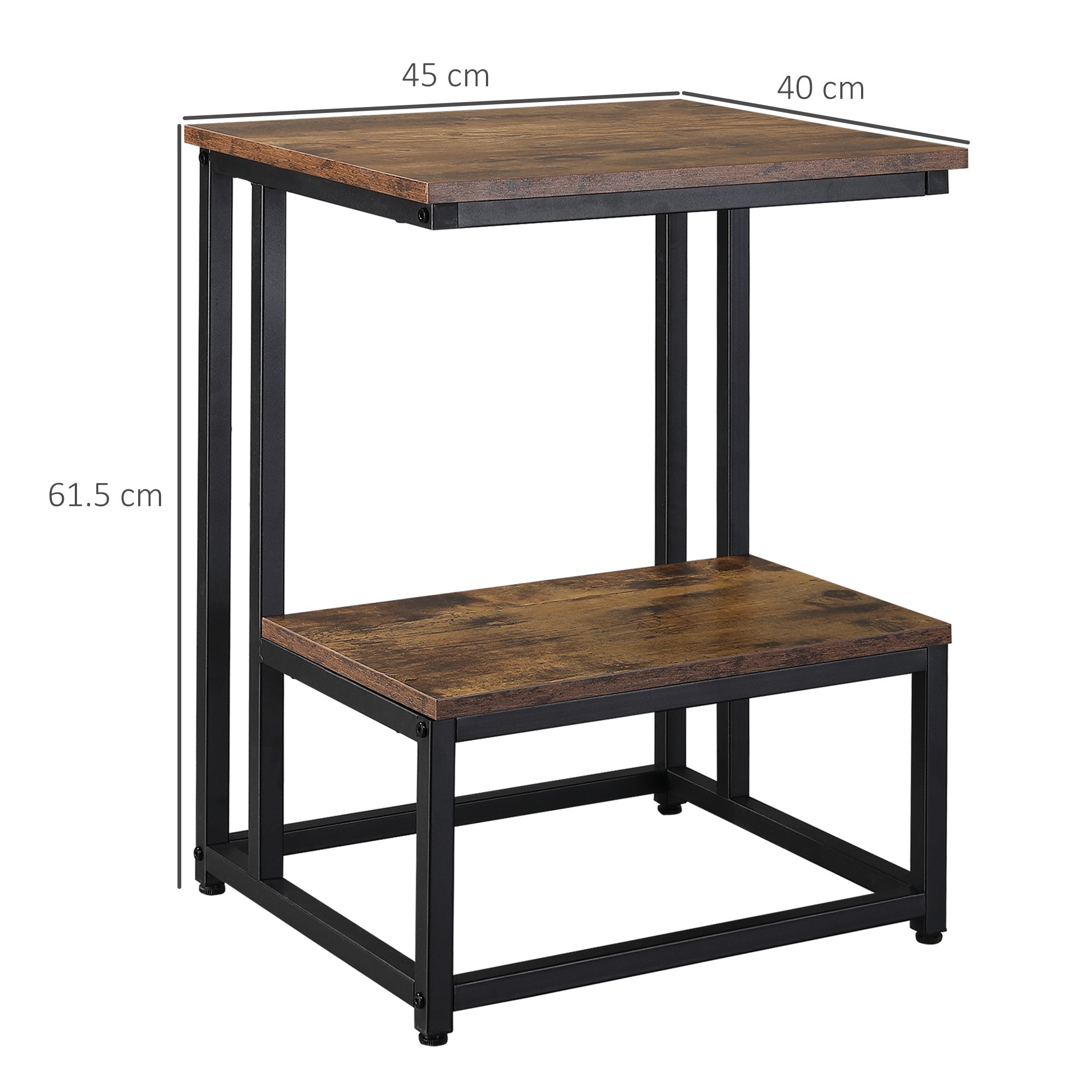 Side Table Doule Layer End Table Modern Coffee Table w/ Steel Frame