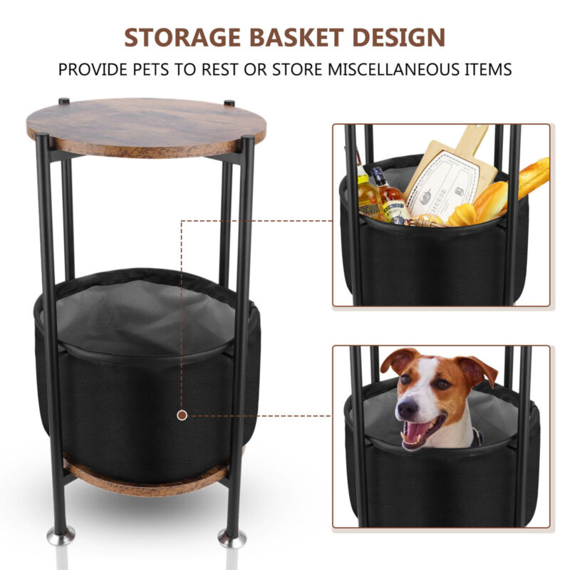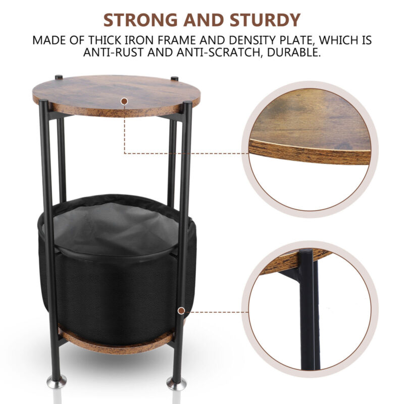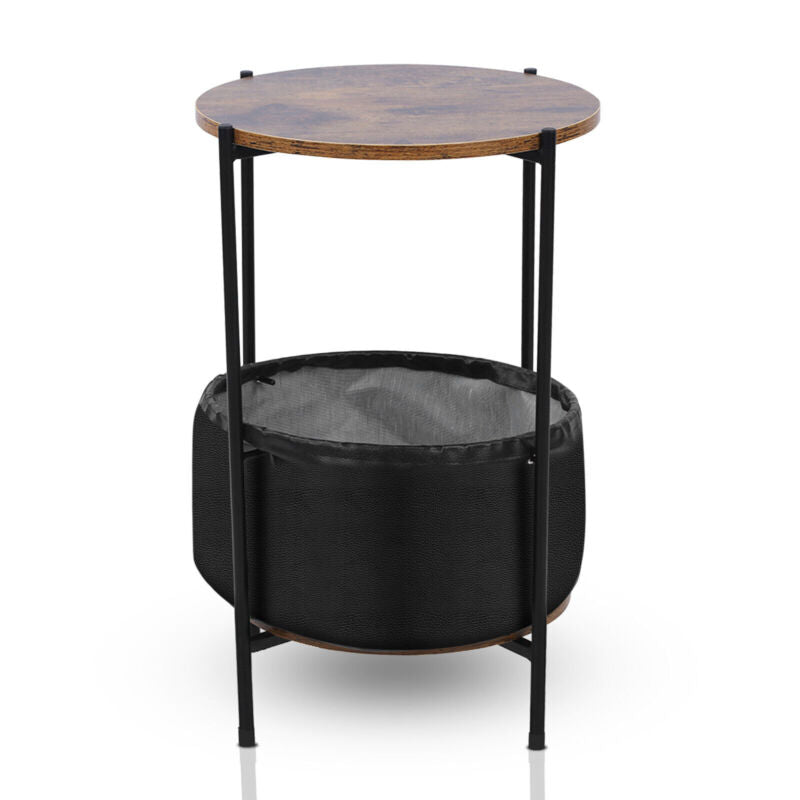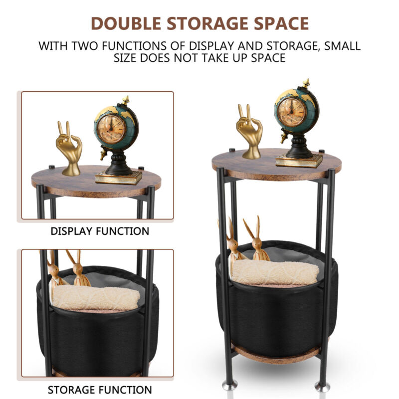 Side Table Sofa End Tables w/Antique Wood Tabletop Fabric Storage Living Room