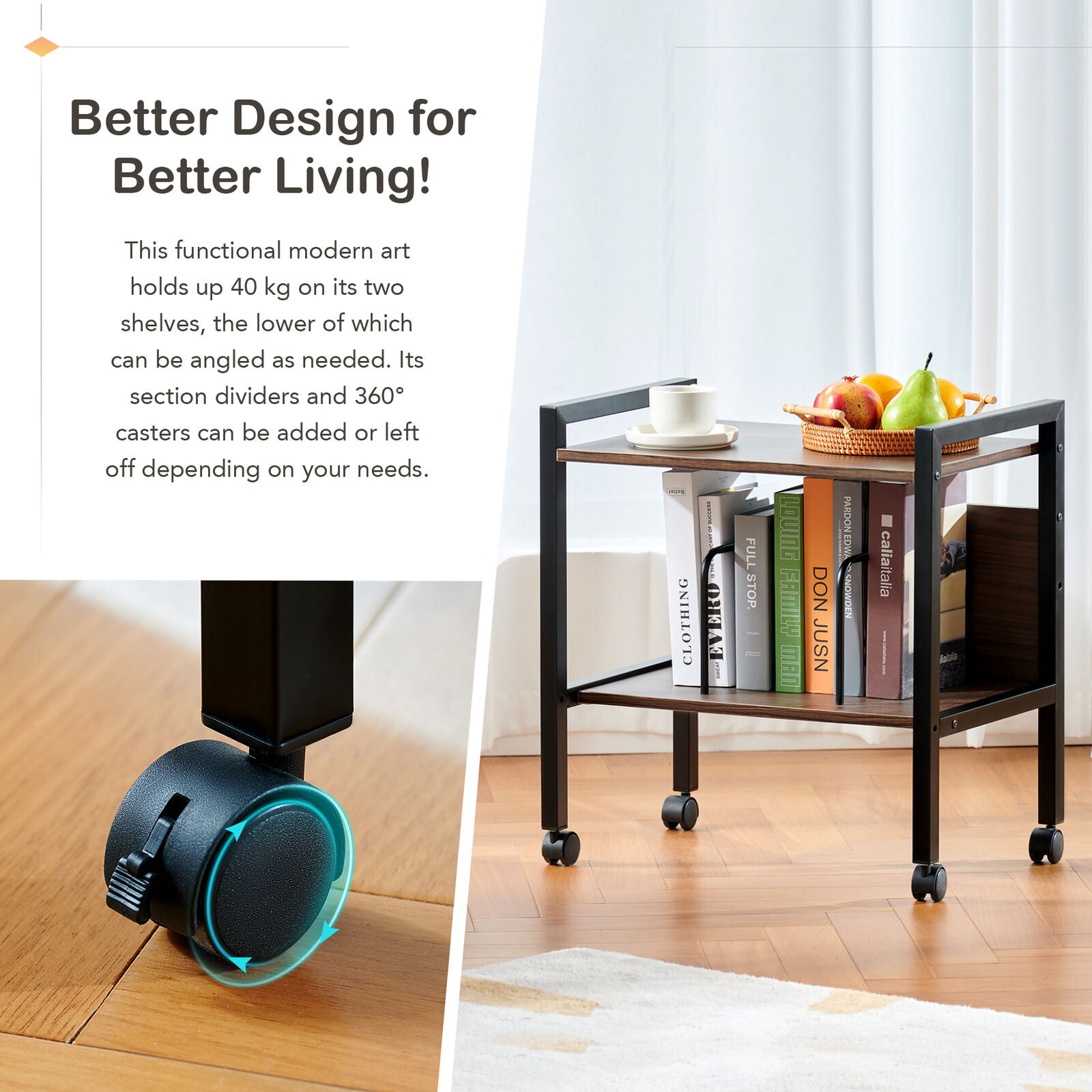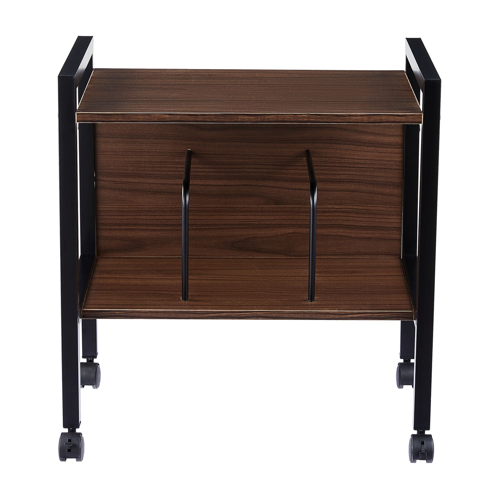 Side Table with Magazine Rack Adjustable Shelf Optional Bookends Castors, Brown
