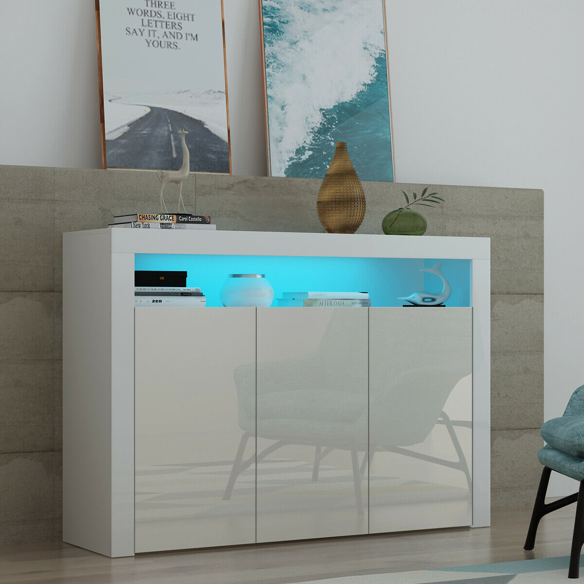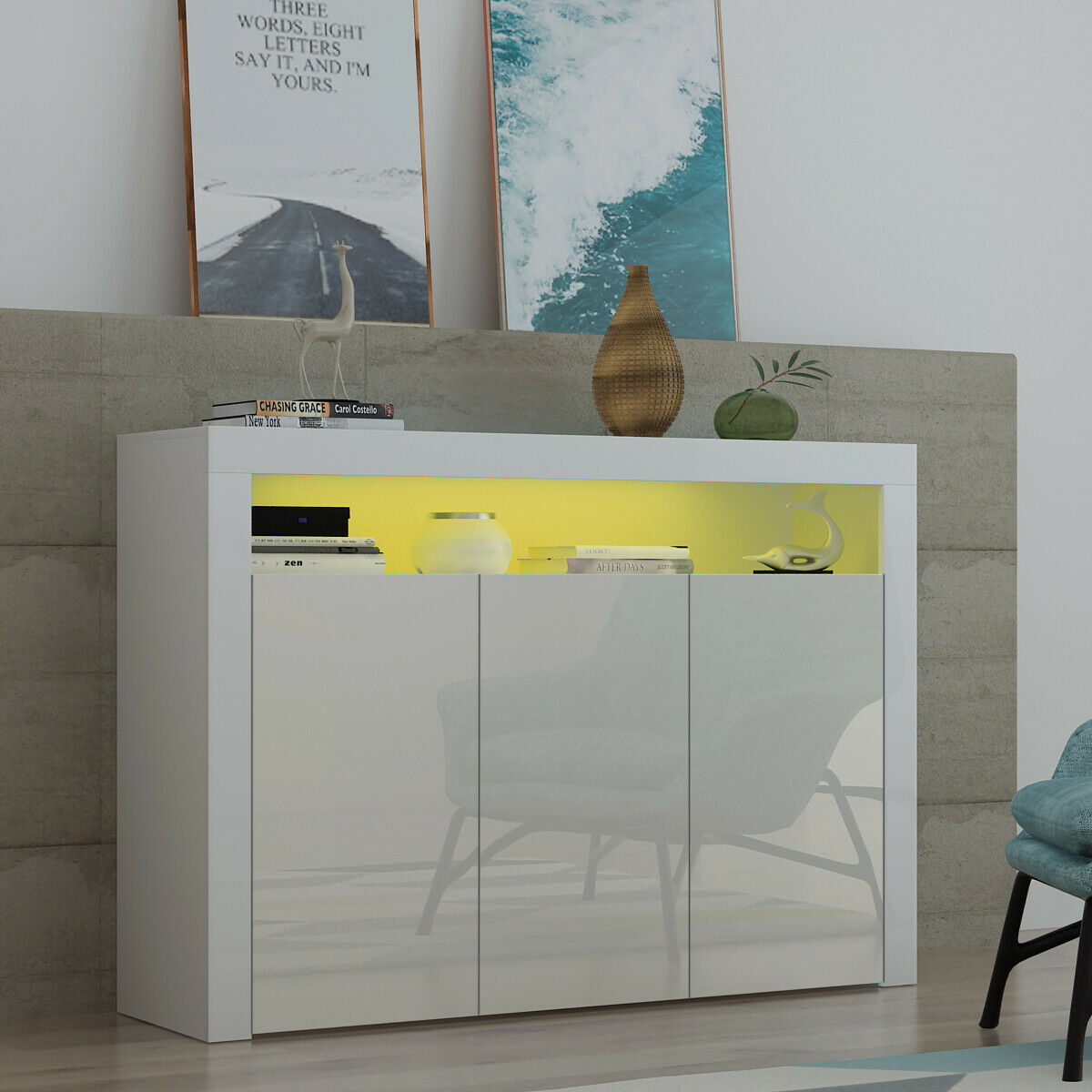 Sideboard 3 Doors Cabinet Cupboard Matt Body and High Gloss Doors RGB LED Light