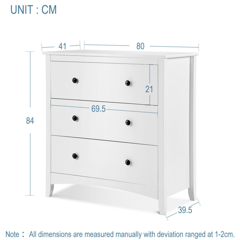 Sideboard Cabinet Chest of Drawers Storage 3 Drawers Anti-tipping Bedroom White