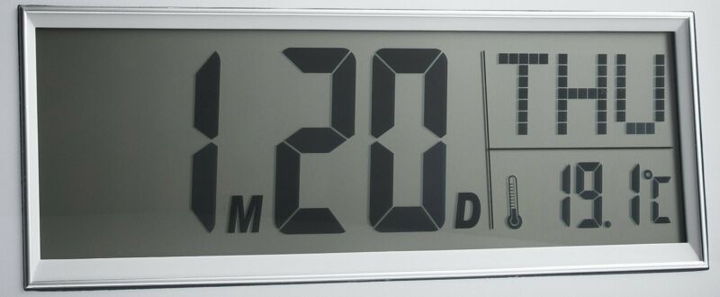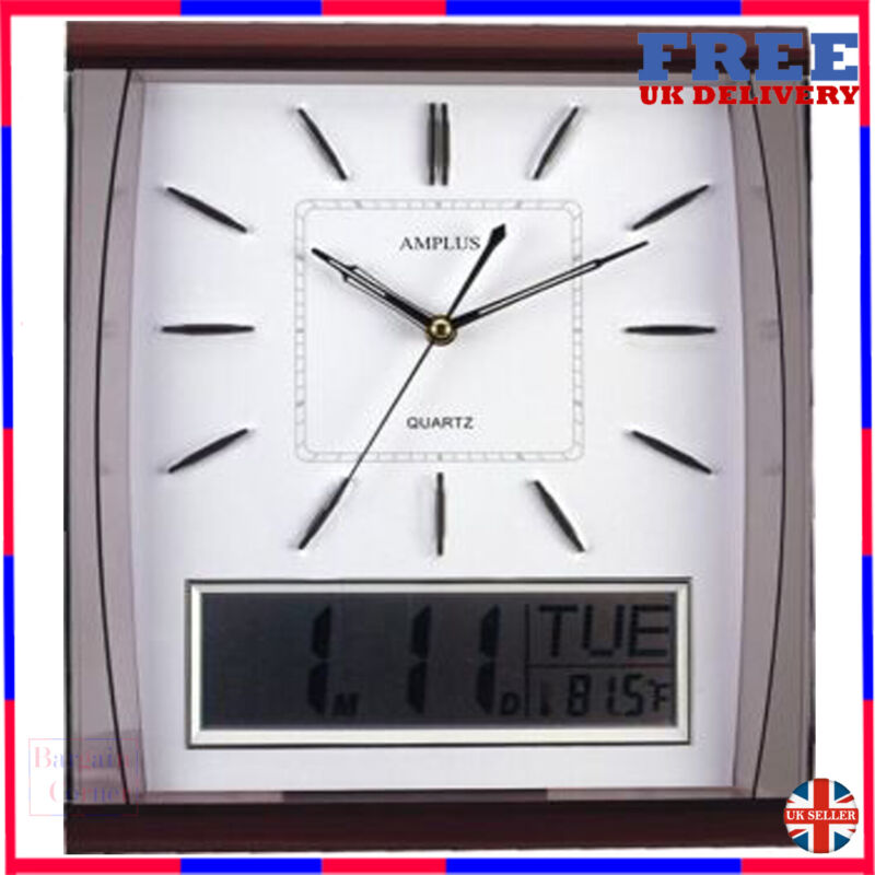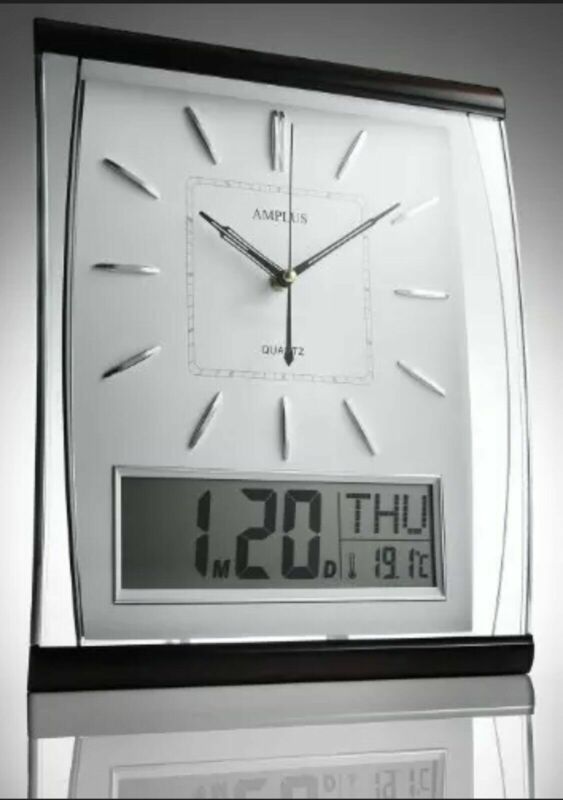 Silent Sweep Wall Clock and Large Digital Month/Date/Day Display in White