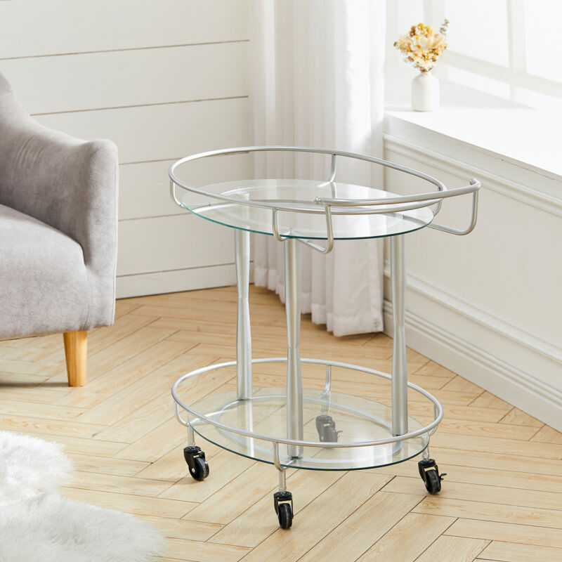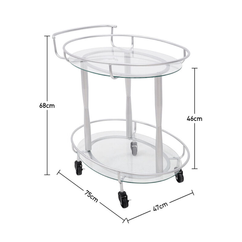 Silver Drinks Trolley 2 Tier Glass Rack Display Storage Kitchen Bar Serving Cart