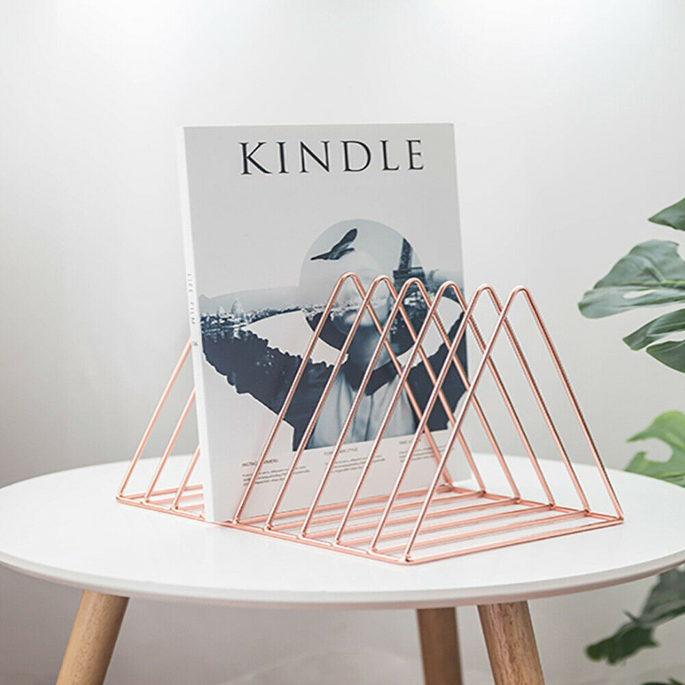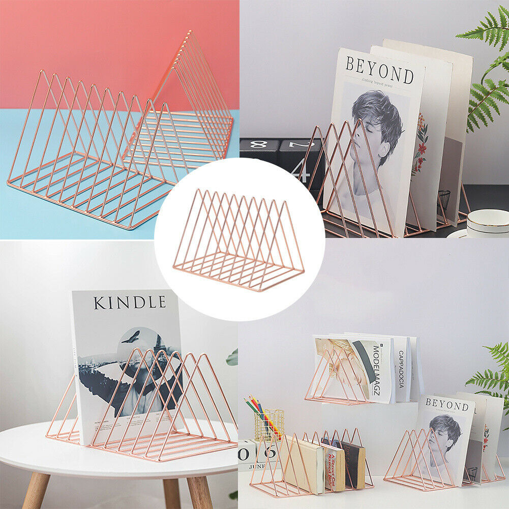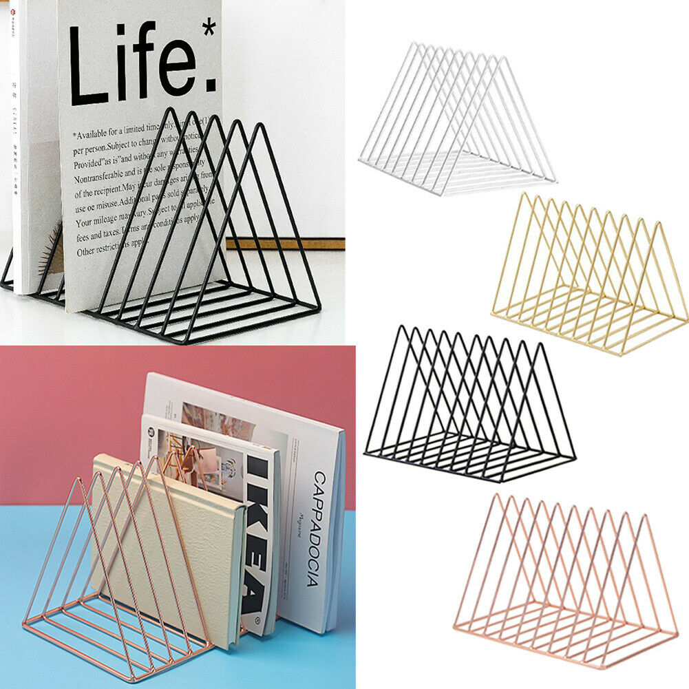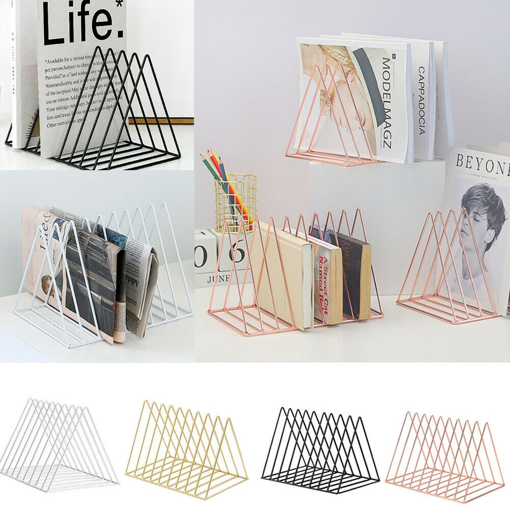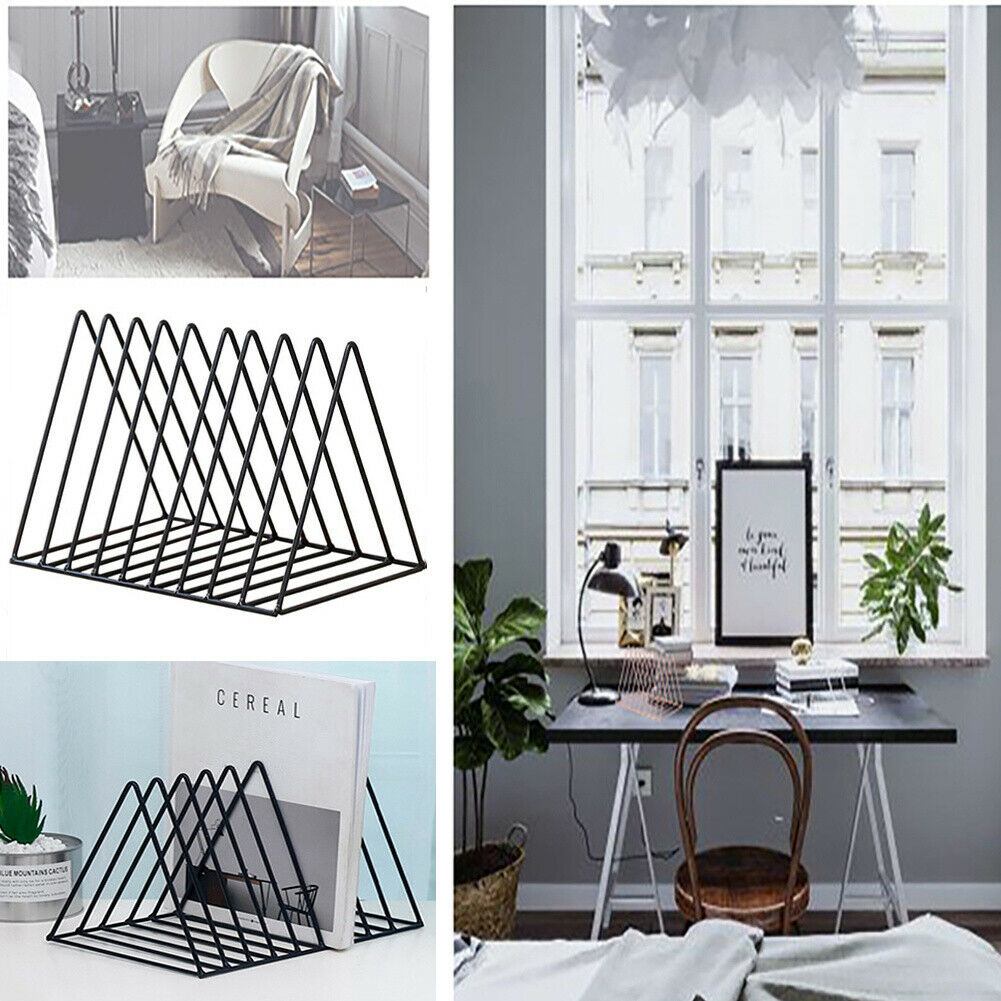 Simple Style Rose Gold Triangle Iron Wire Magazine Rack Black White Bookshelf UK