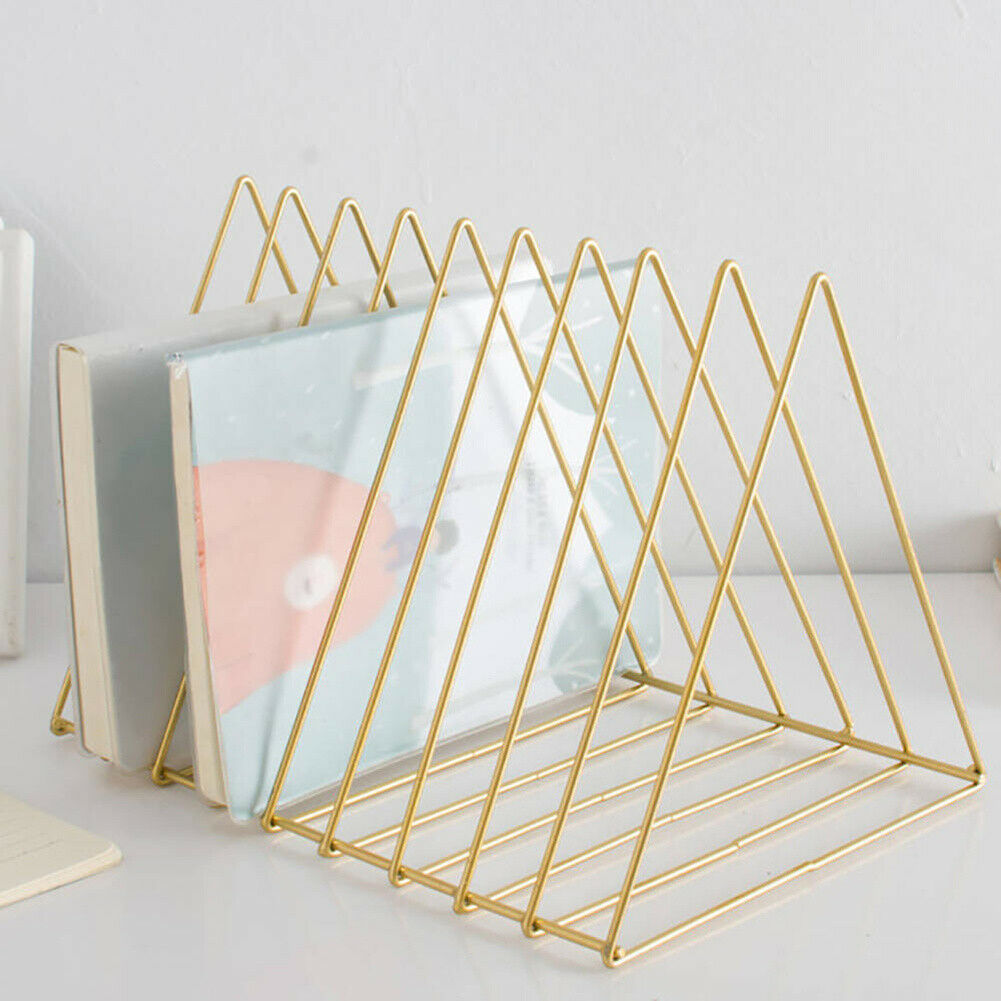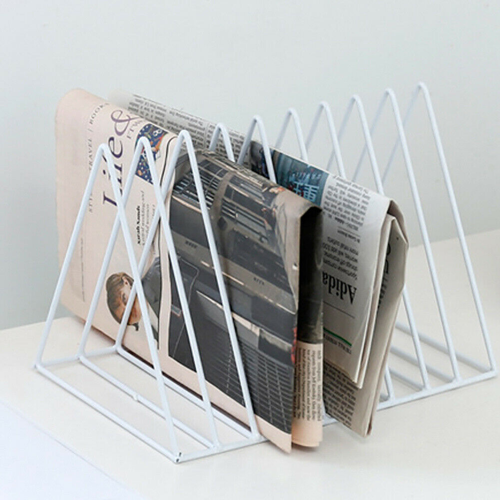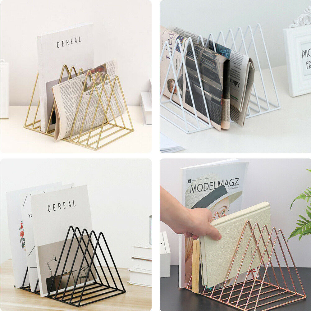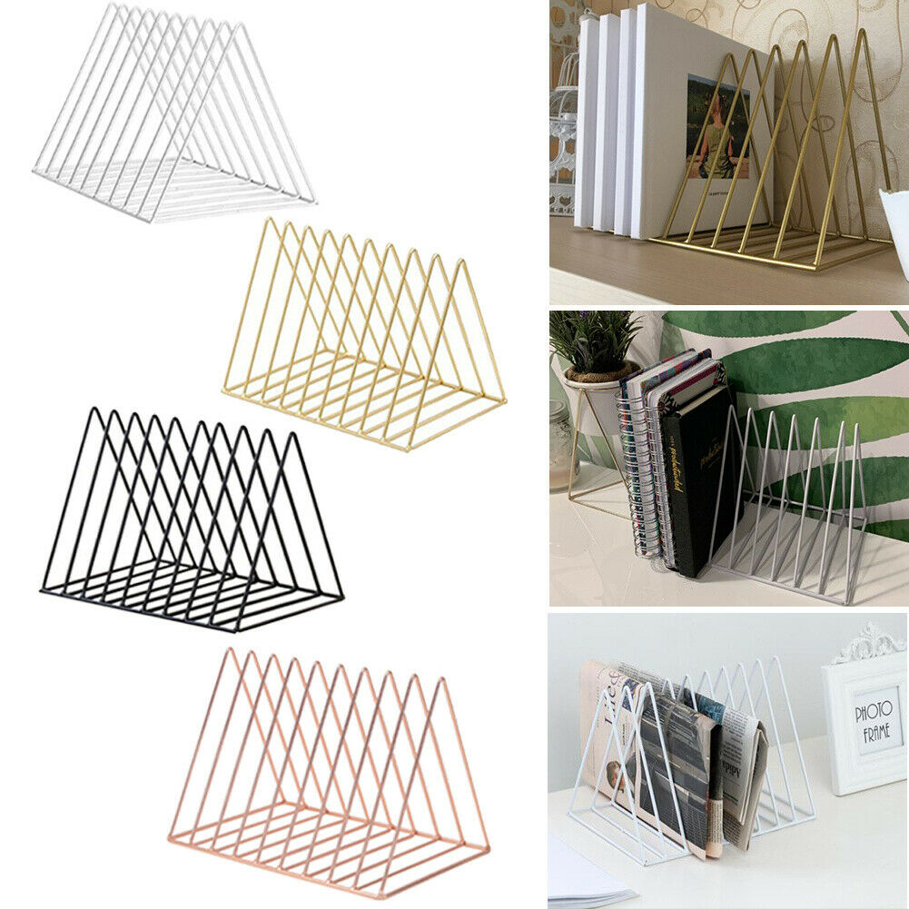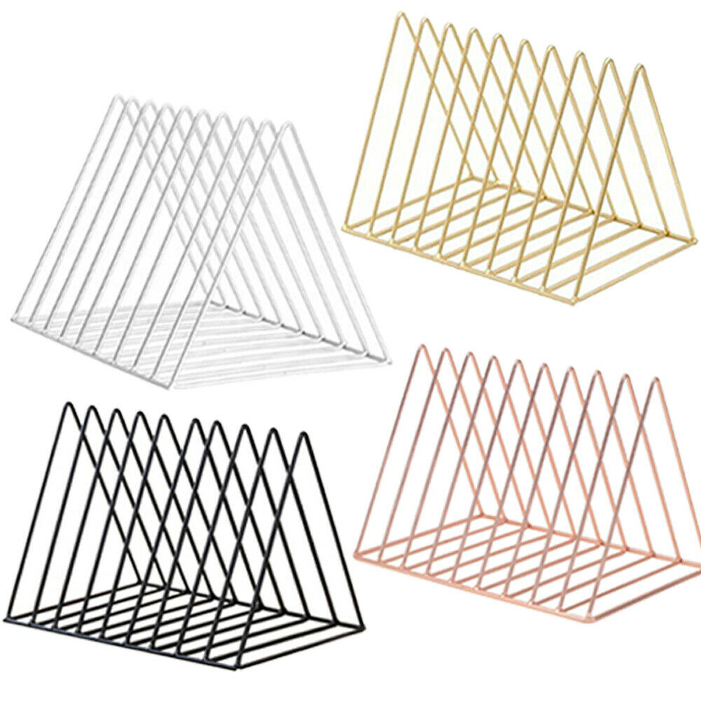 Simple Style Rose Gold Triangle Iron Wire Magazine Rack Black White Bookshelf UK