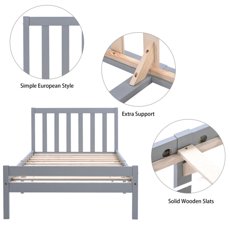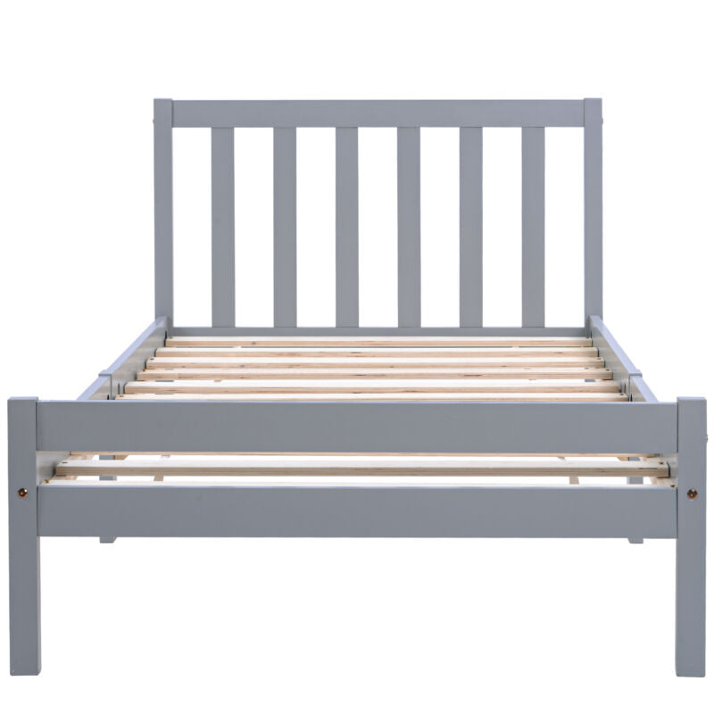 Single Bed 3ft Grey Solid Pine Wooden Bed Frame Shaker Style Bedroom Furniture