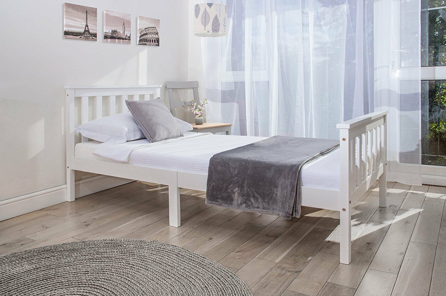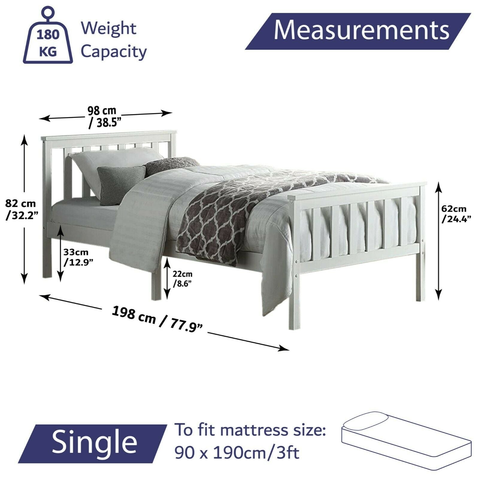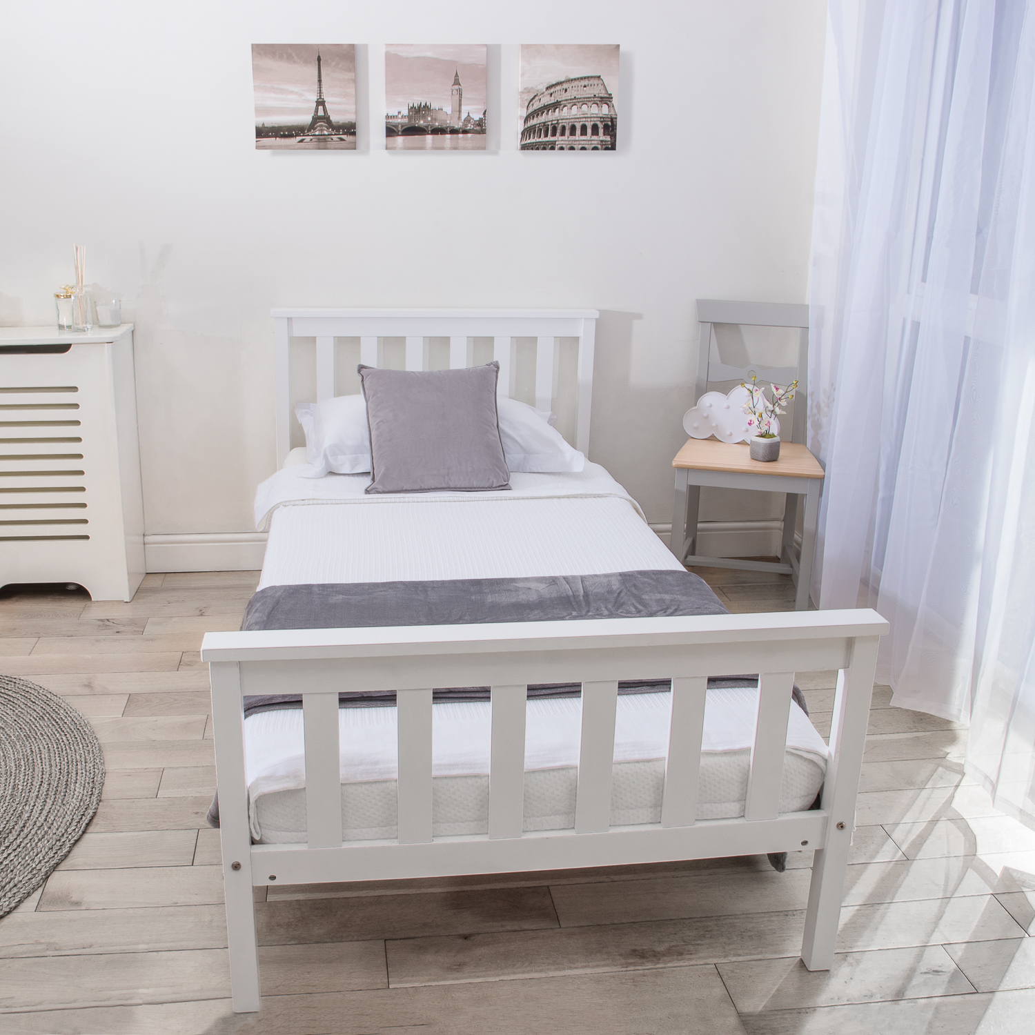 Single Bed Frame White Wooden Bed For Adults Kids Teenagers Bedroom 3FT Pine Bed