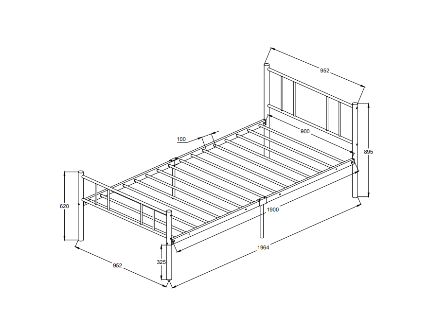Single Bed Solid 3ft Metal Beds Frame with Large Storage Space Single Bedstead