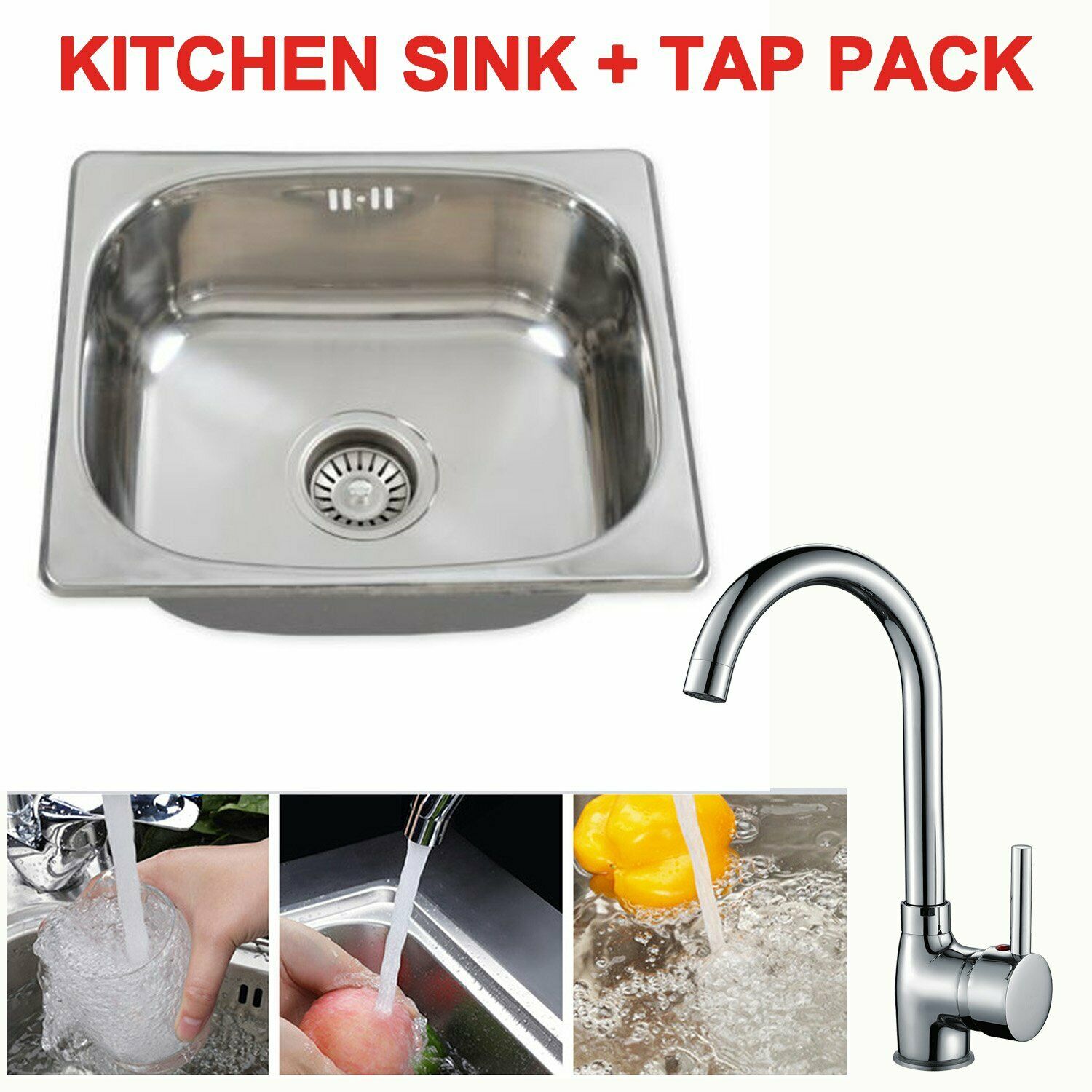 Single Bowl Laundry Stainless Steel Kitchen Sink + Single Lever Chrome Brass Tap
