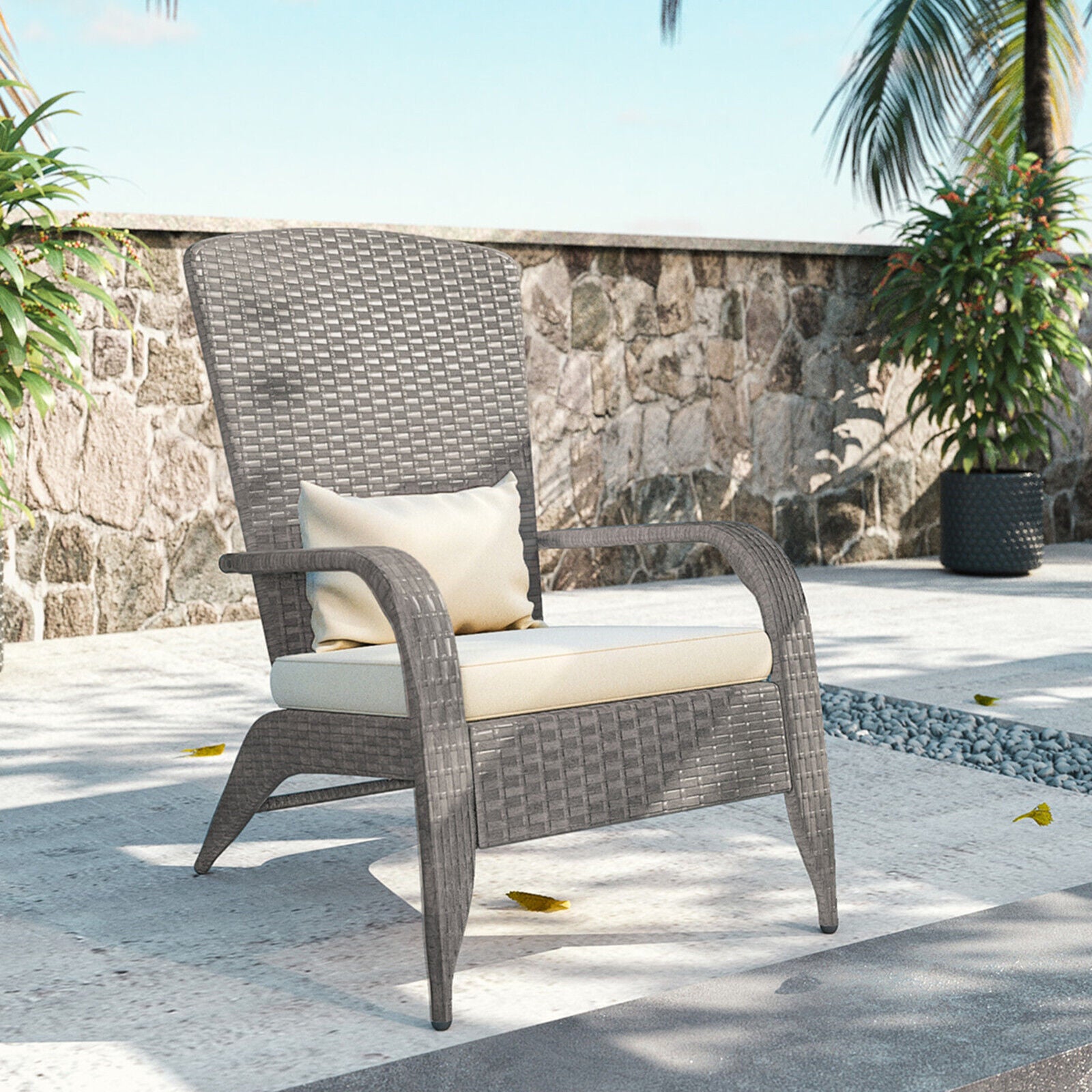 Single Garden Rattan Chair w/Armrest & Cushions Patio In/Outdoor Furniture Grey