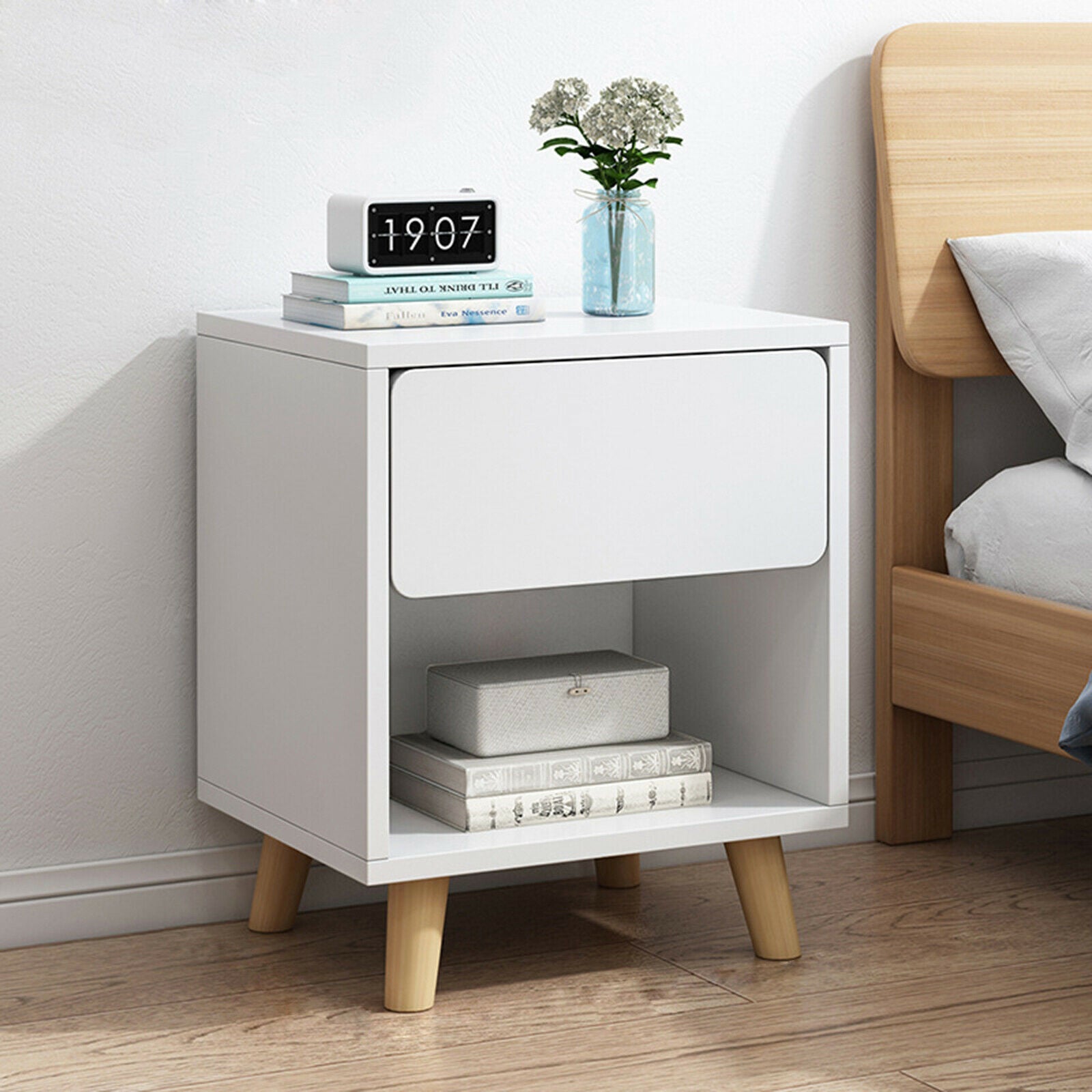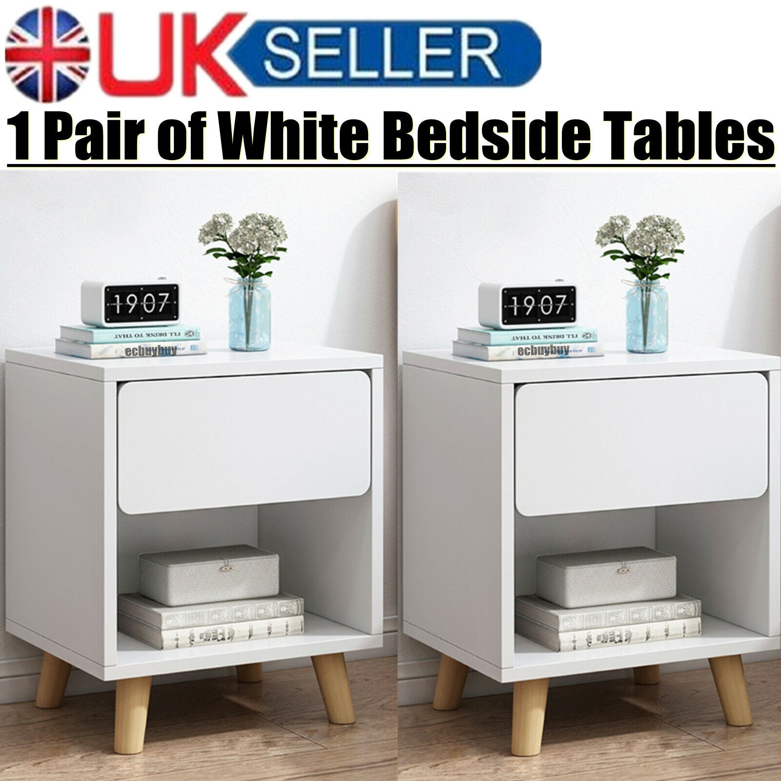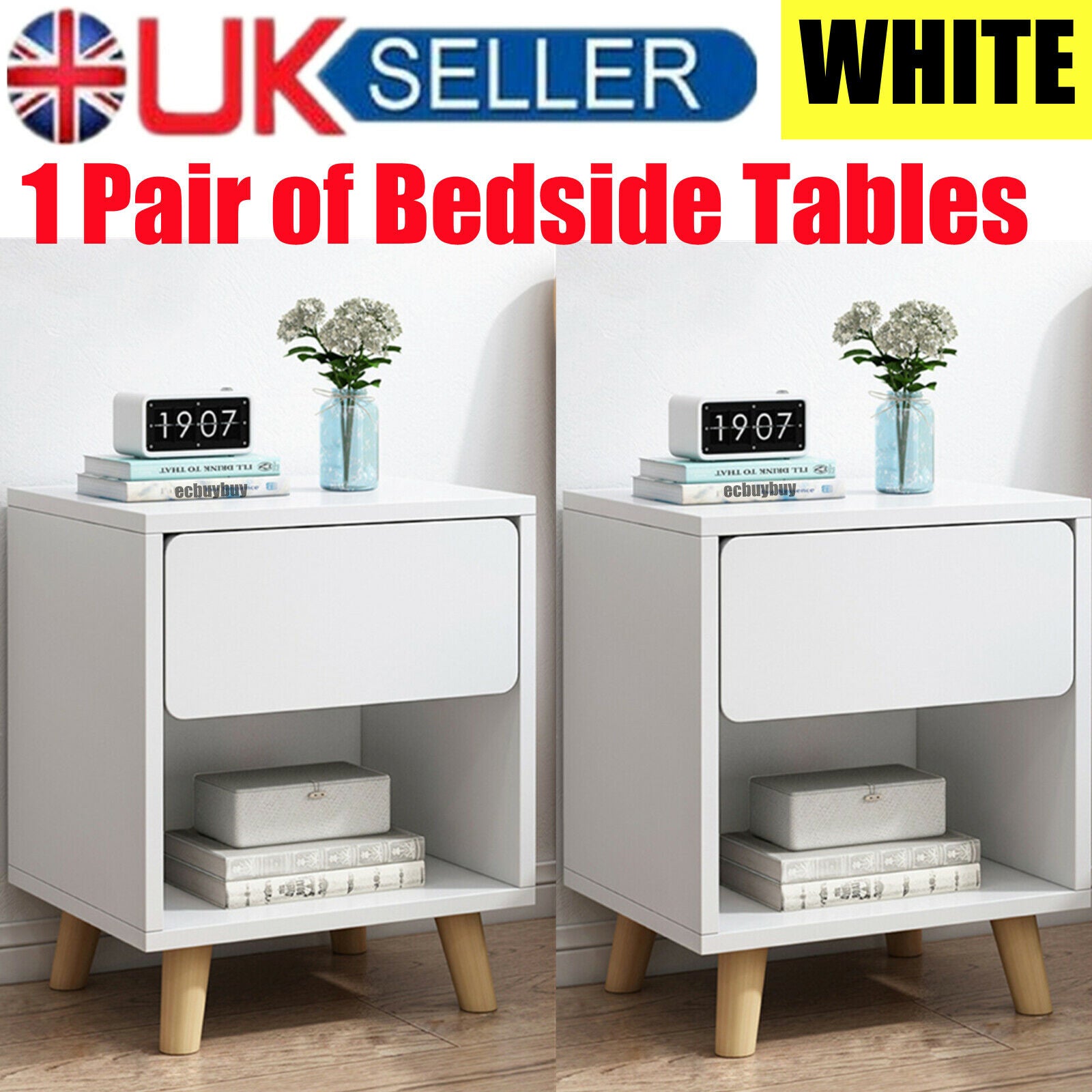 Single/Pair Bedroom Bedside Tables Cabinets Nightstand with 1 Drawer White