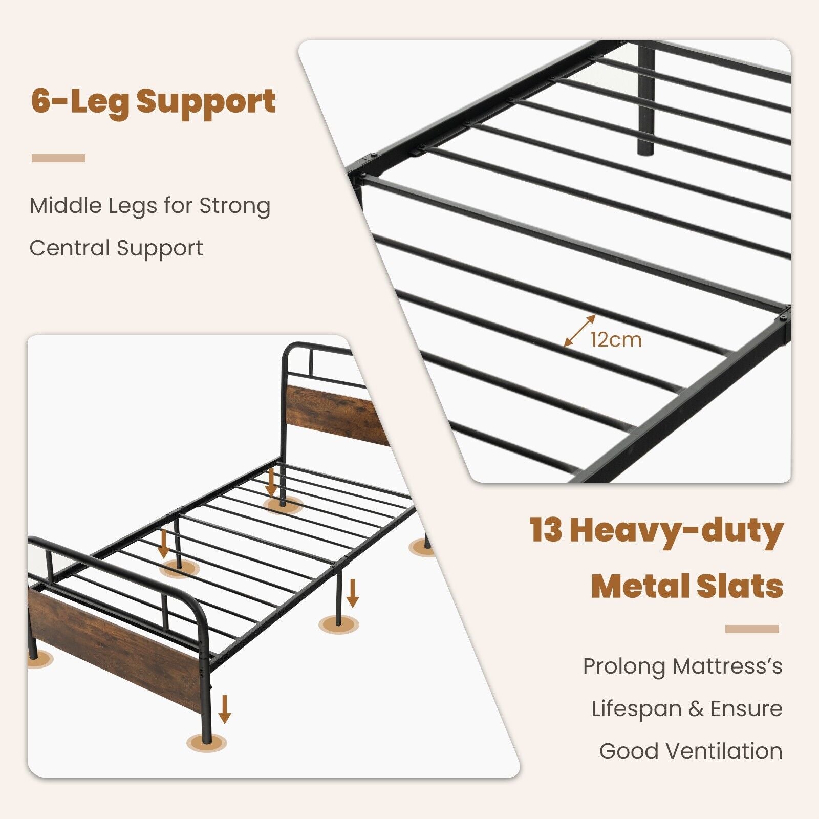 Single Size Bed Frame Platform Metal Slats Support Bed W/ Industrial Headboard
