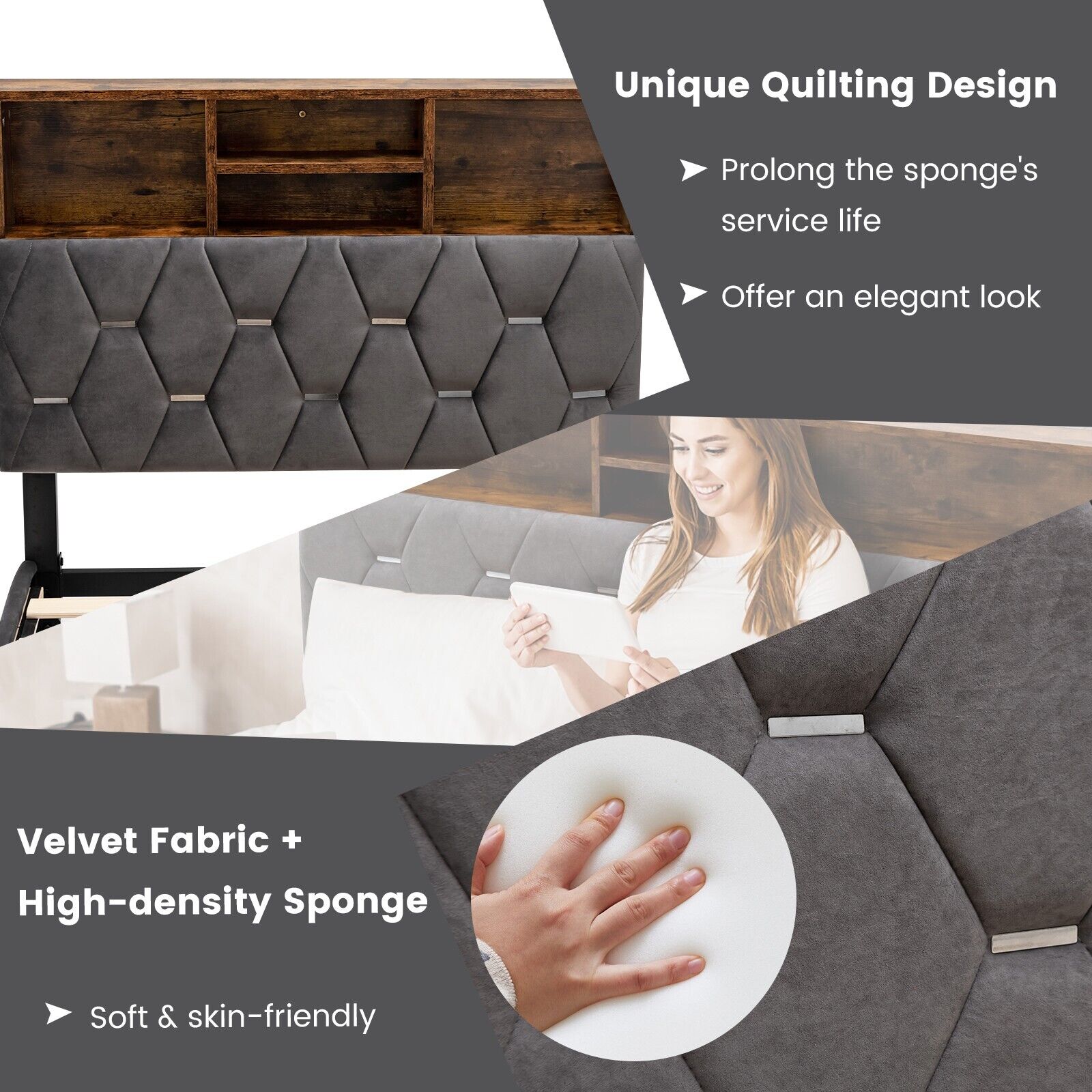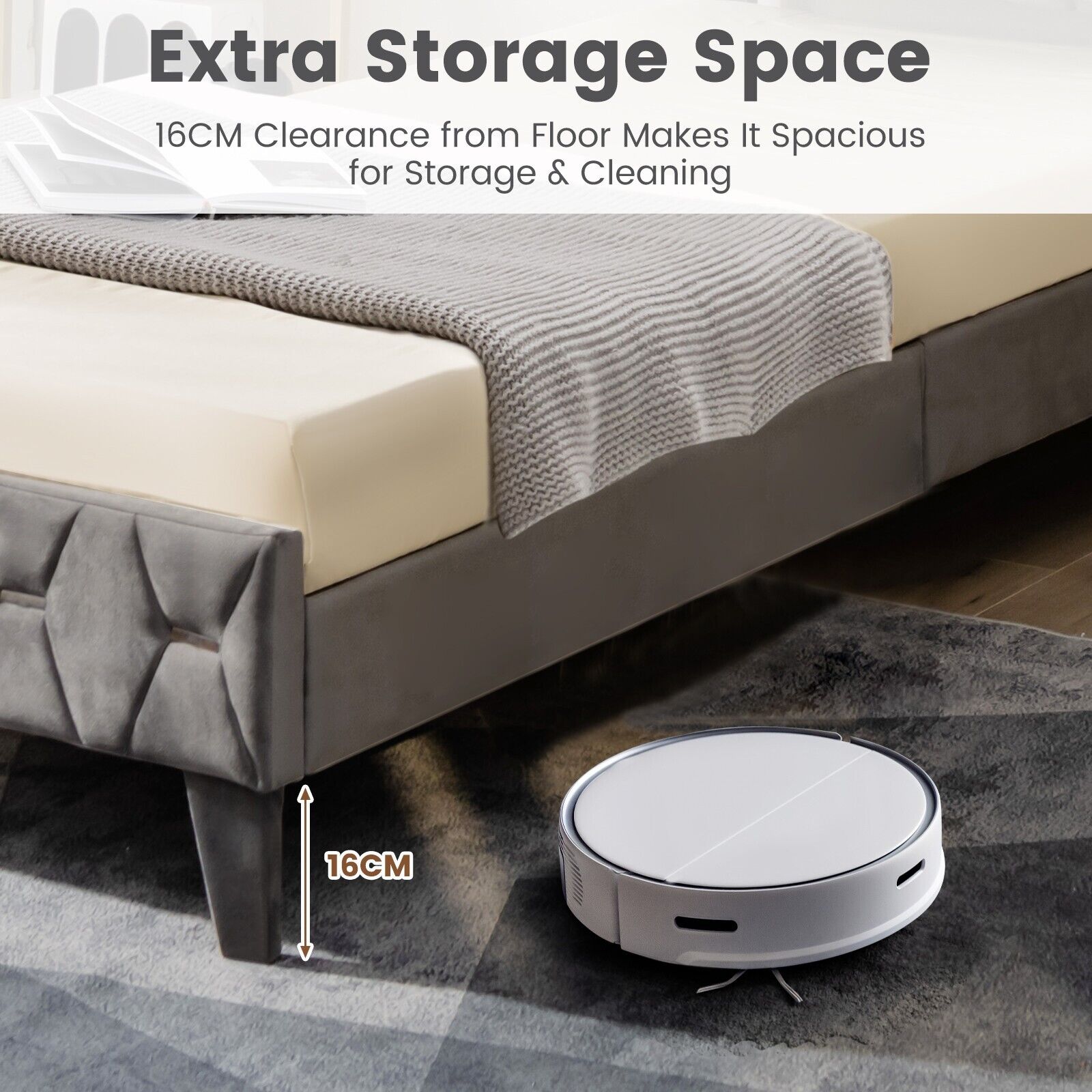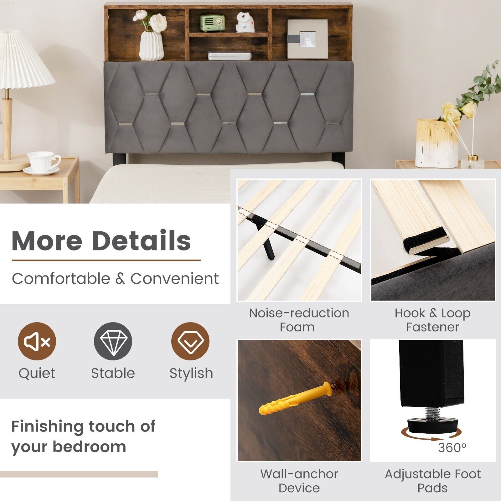 Single Size Bed Frame Upholstered Platform Bed Slat Support W/ Storage Headboard