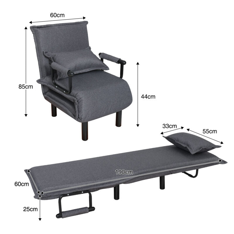 Single Sofa Bed 3-In-1 Folding Armchair Sleeper Lounge Couch Seat with Pillow
