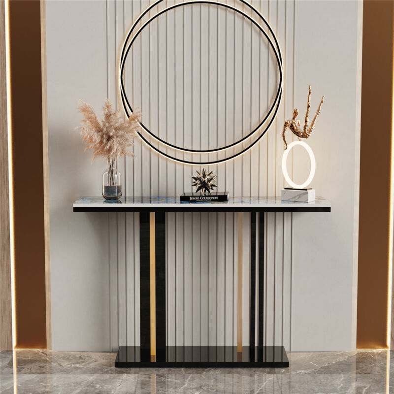 Sintered Stone Console/ Long Table with Metal Frame for Home Foyer Porch Decor