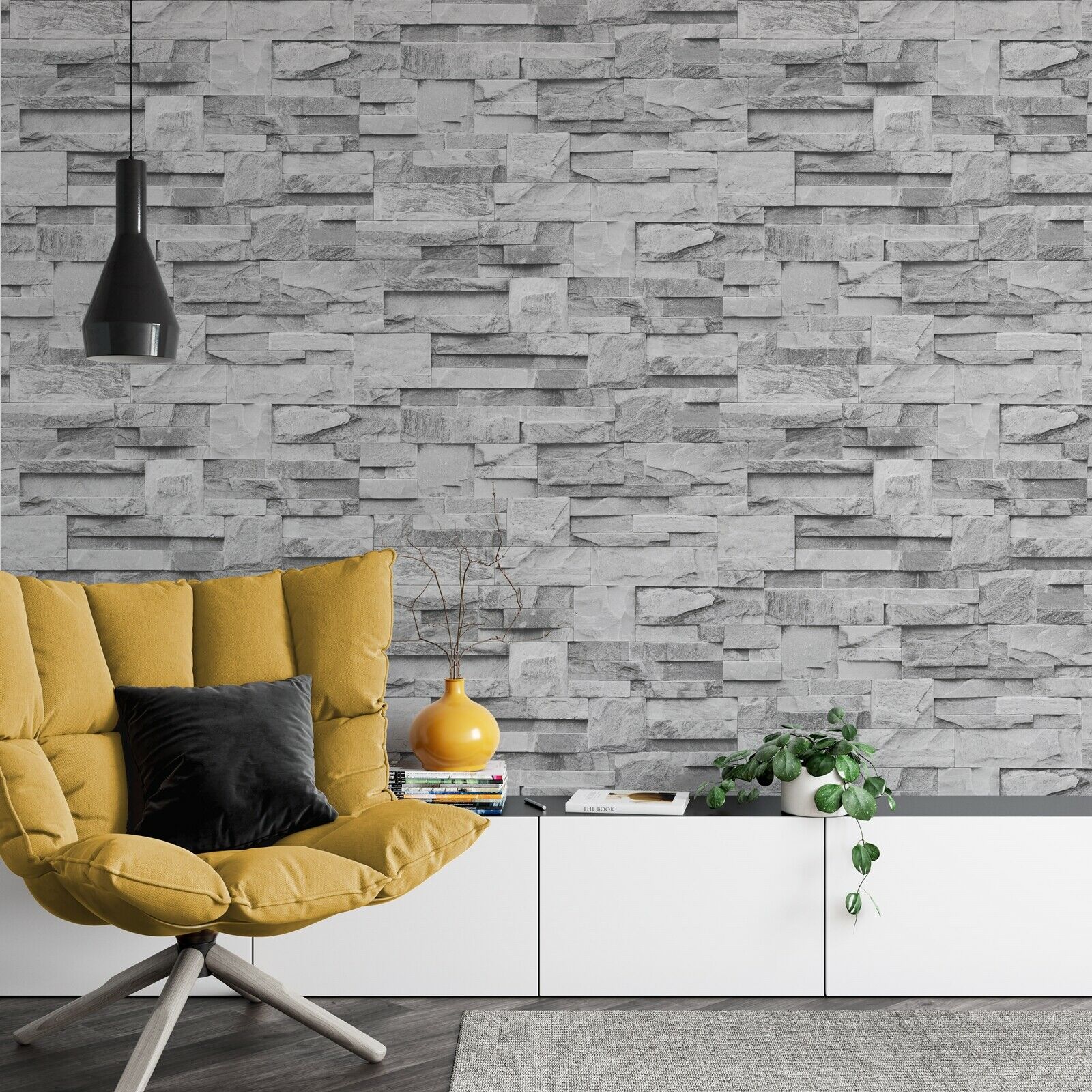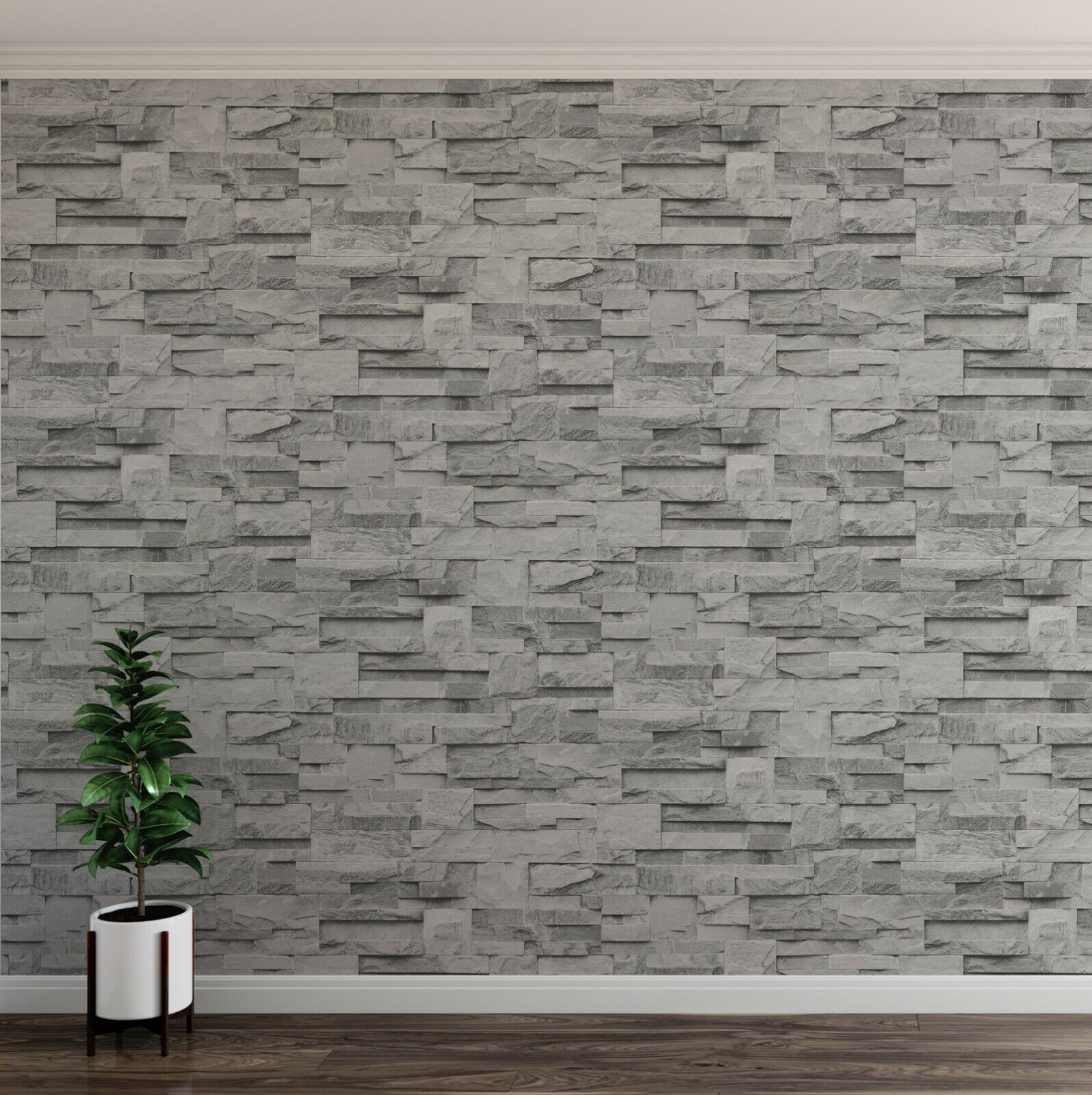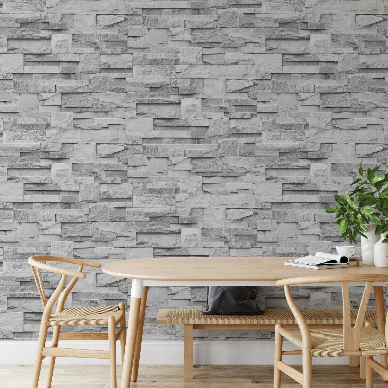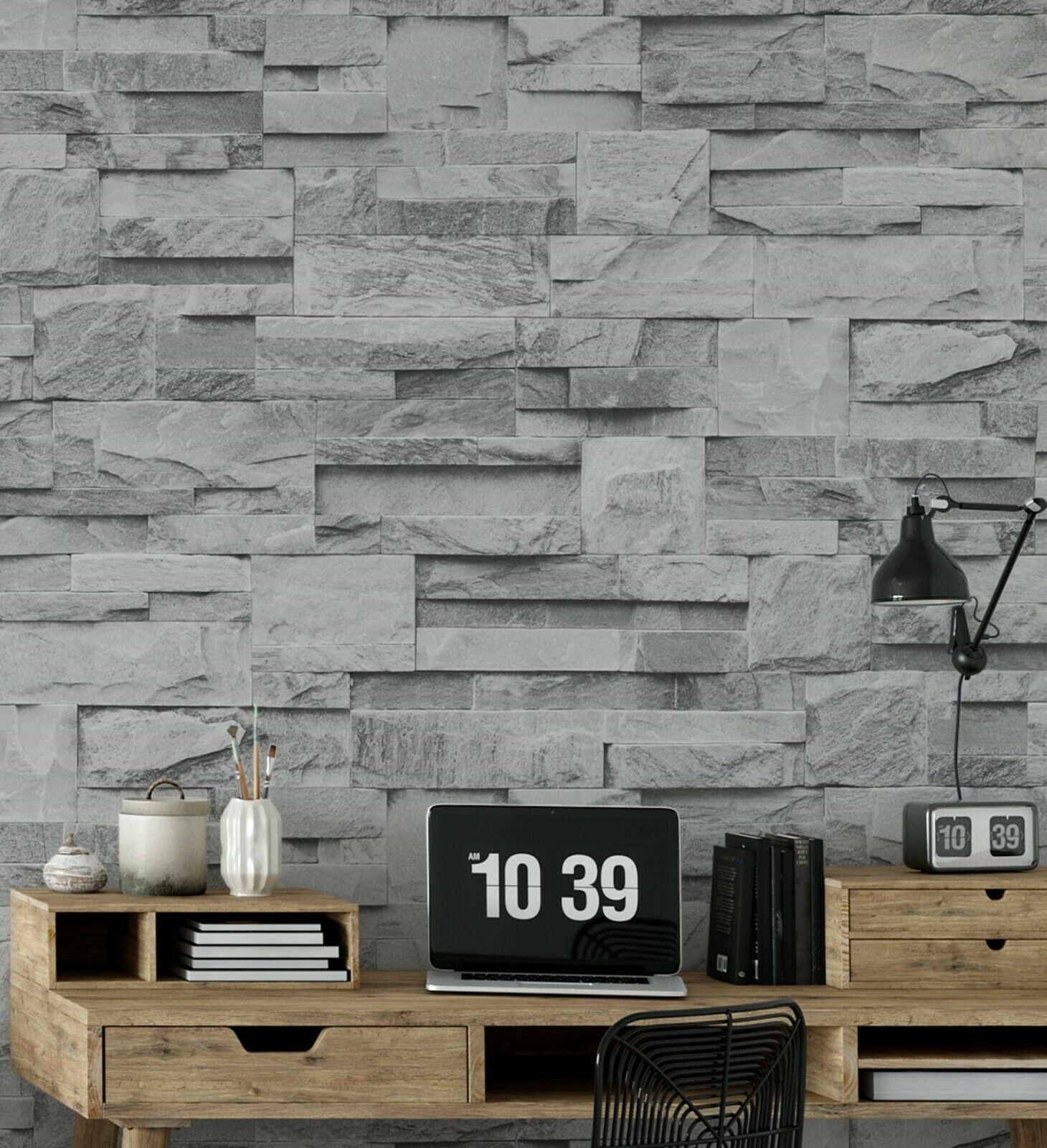 Slate Grey Realistic Stone Brick Wall Effect Textured Wallpaper Wall Faux