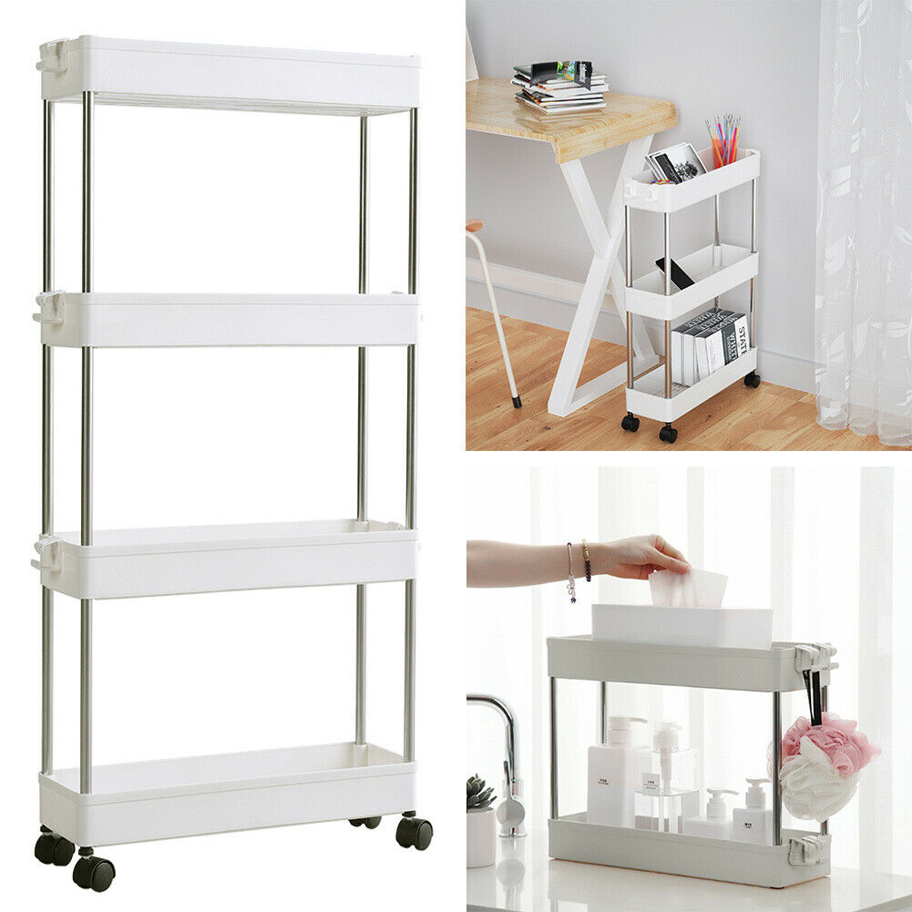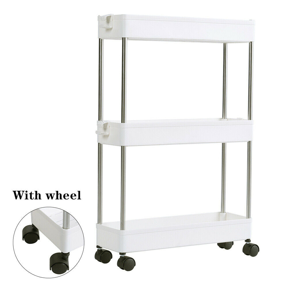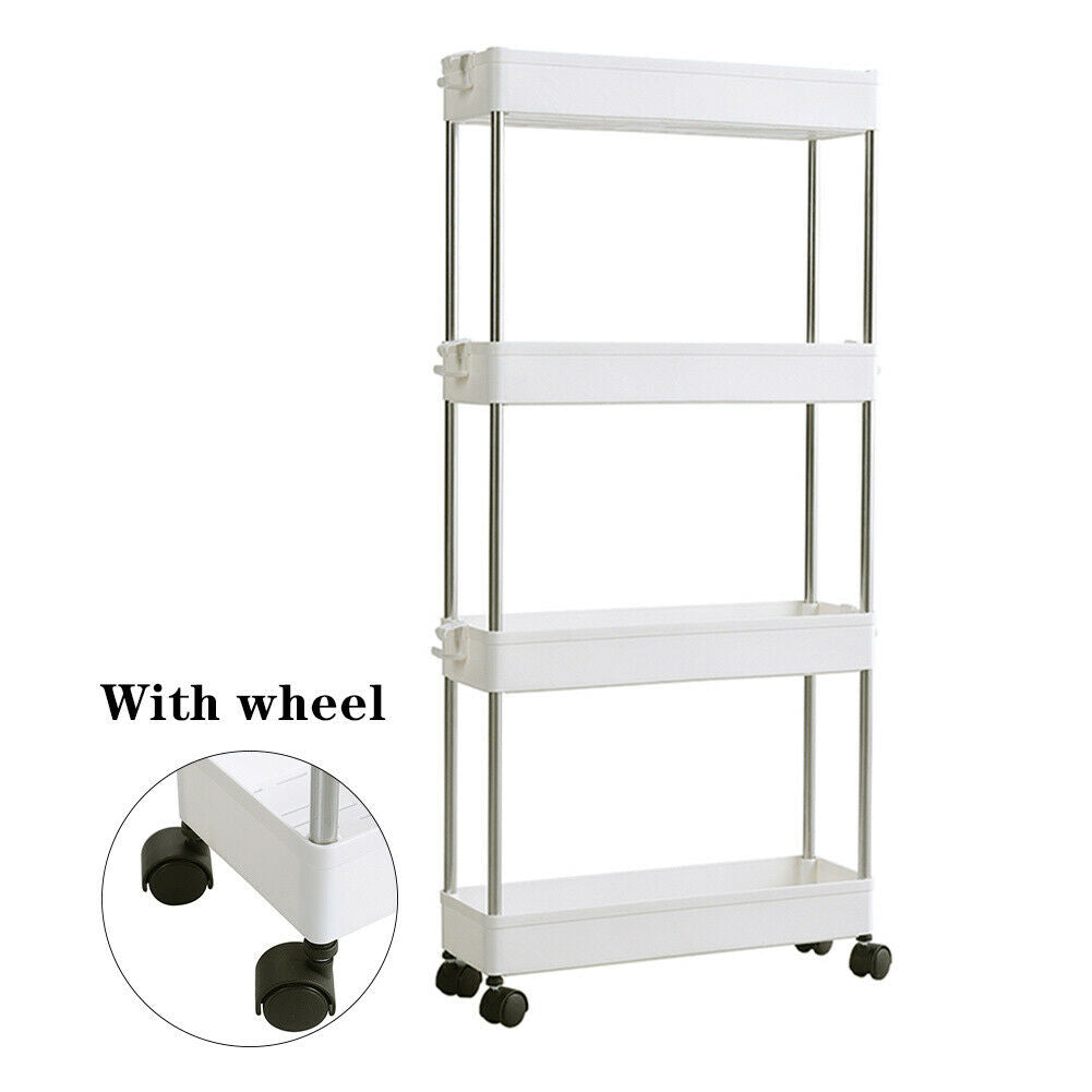 Slide Out Kitchen Storage Rack Bathroom Slim Organiser Basket Shelves on Wheels