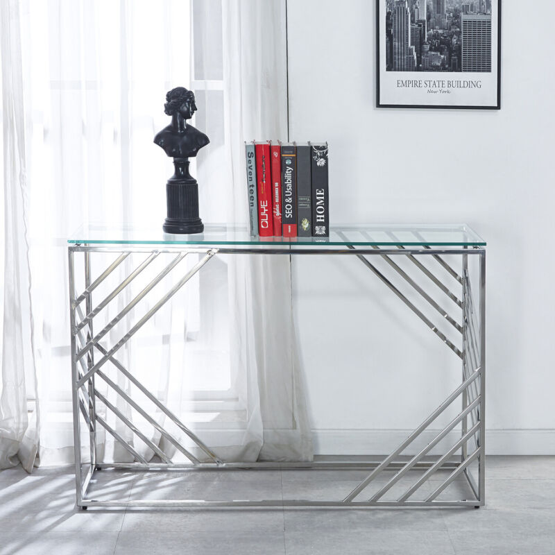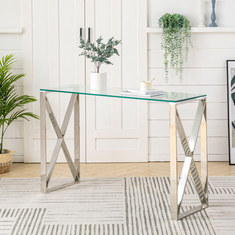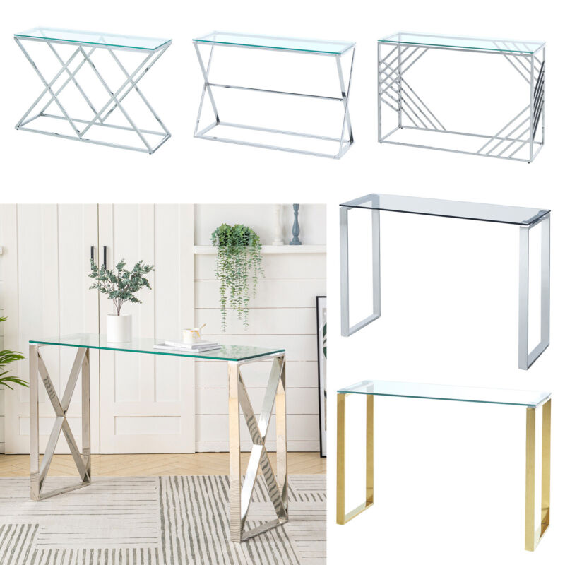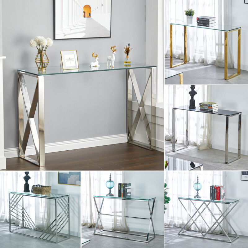 Slim Console Table Side Narrow Desk Kitchen Hallway Stand Rectangular Glass Unit