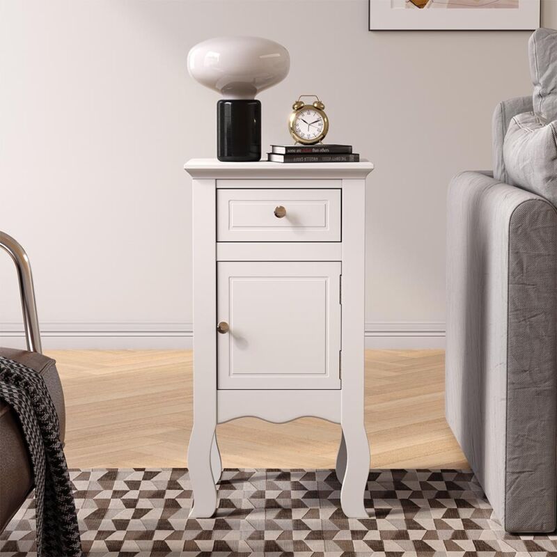 Slim Side End Table Wood Sofa Night Stand Bedside Drawer Storage Bedroom Cabinet
