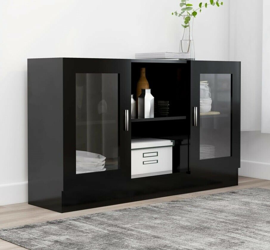 Slim Sideboard Black Modern Cupboard Cabinet Unit Storage Narrow Living Room