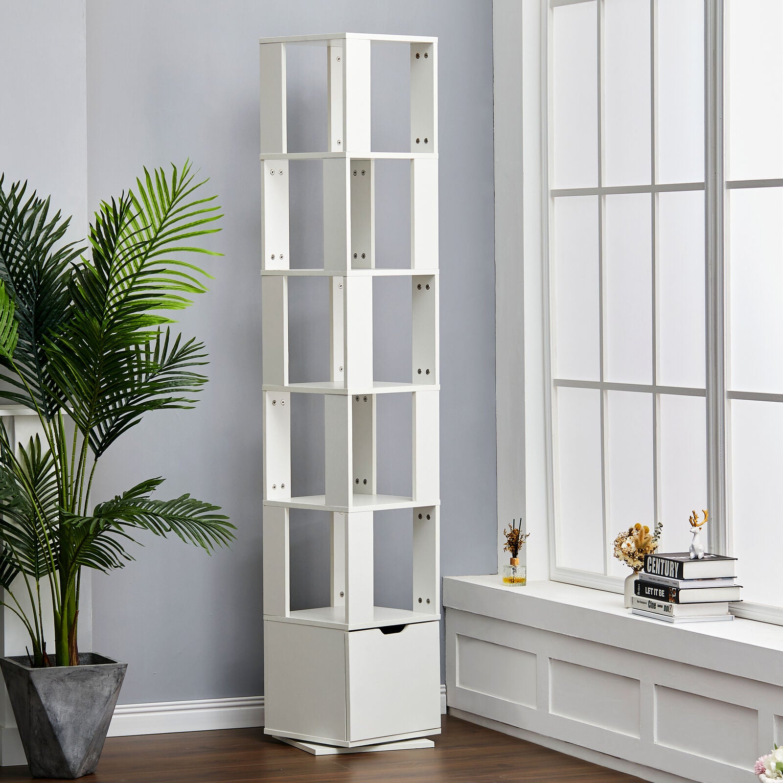 Slim Tower Bookcase Corner Wooden Bookshelf Tall Book CD Shelf Rotating Display