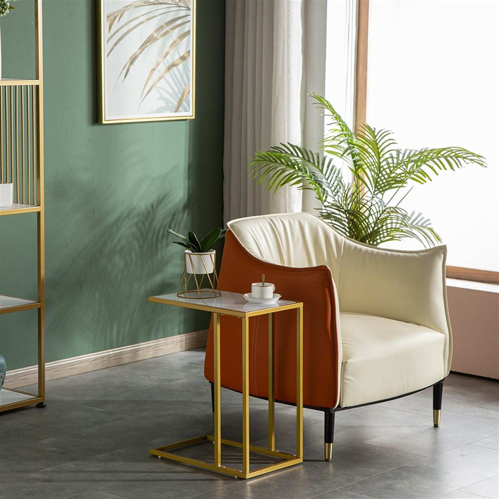 Small C Shaped Sofa Side End Table Laptop Snack Marble Coffee Table Living Room