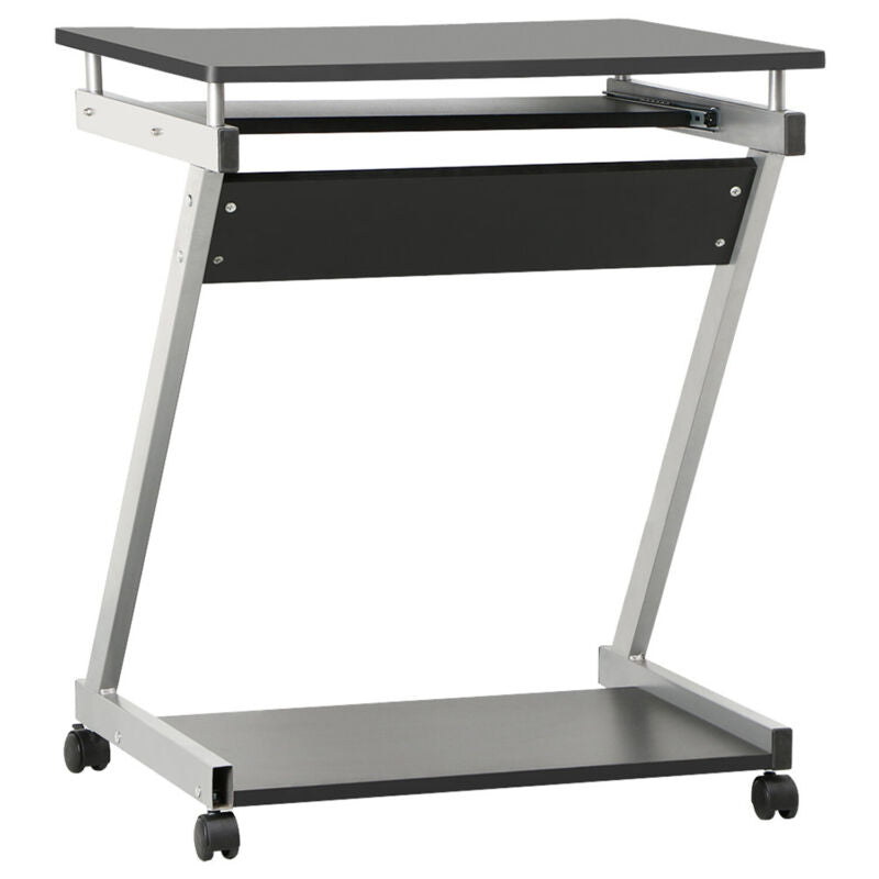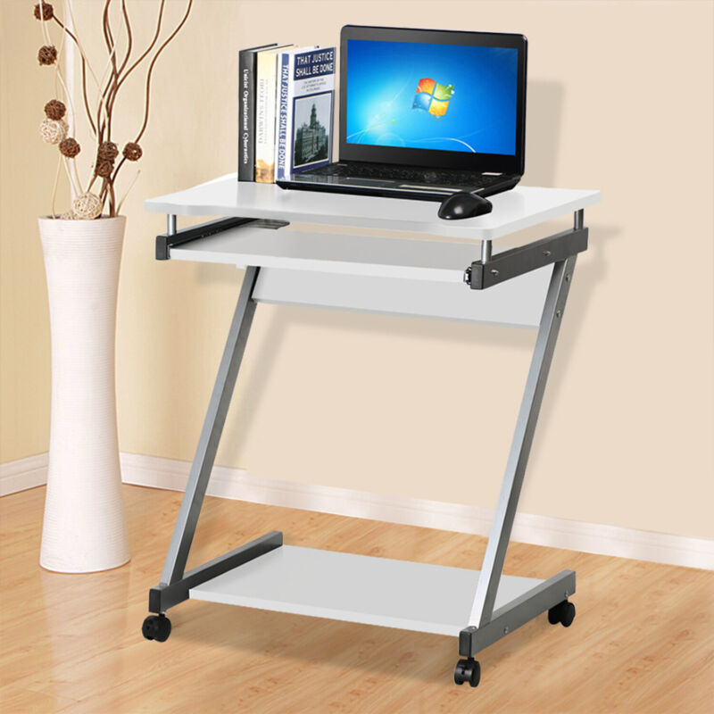 Small Computer Desk on Wheel PC Table w/ Sliding Keyboard for Home Office Study