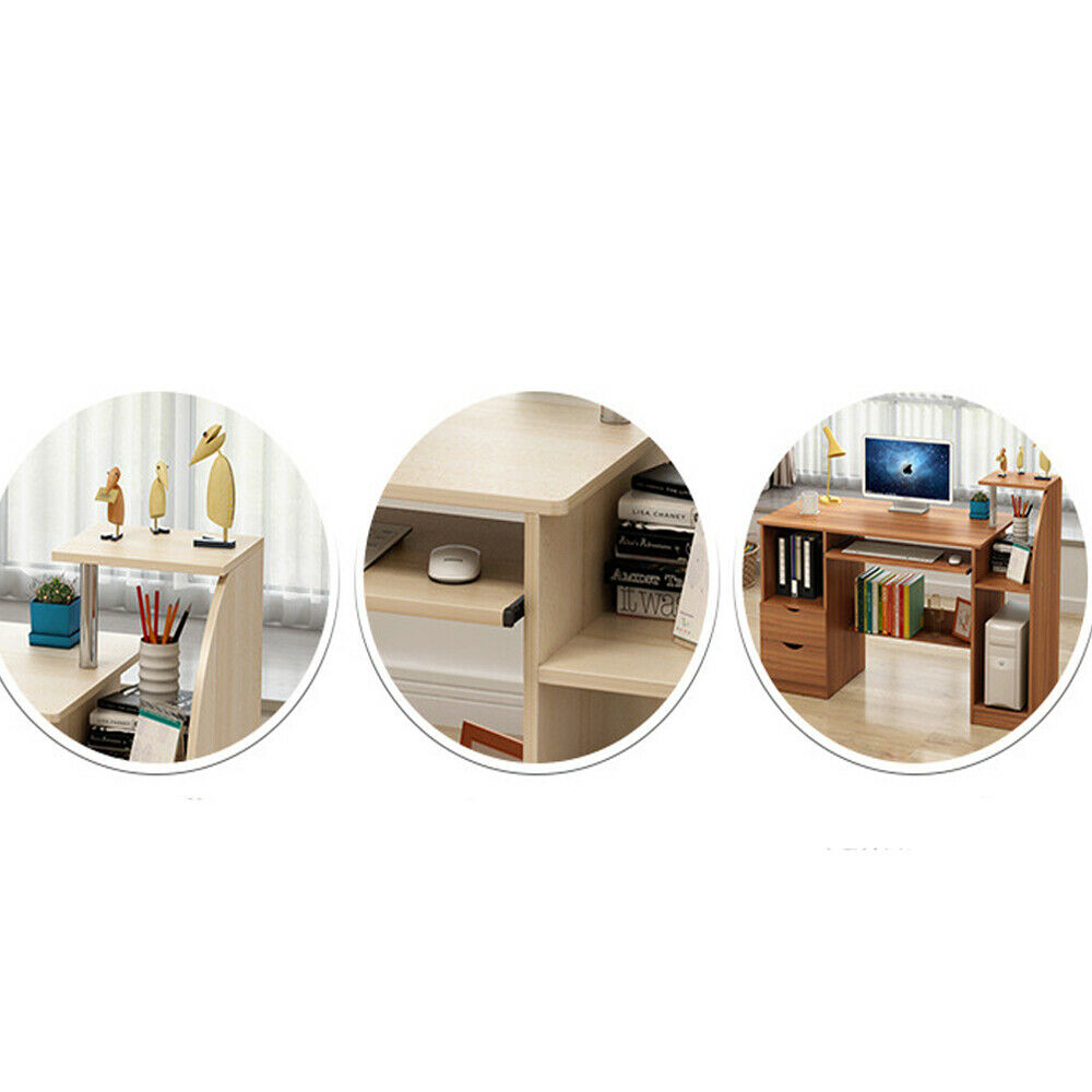 Small Corner Computer Desk Drawer Shelves Home Office Study PC Table Laptop Wood