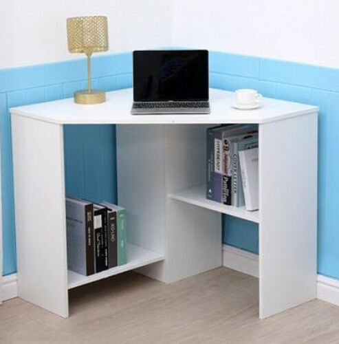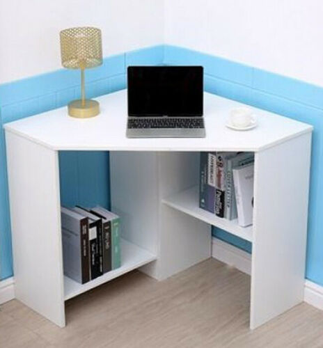 Small Corner Computer Desk Home Office Computer Laptop Table 2 Shelves White New