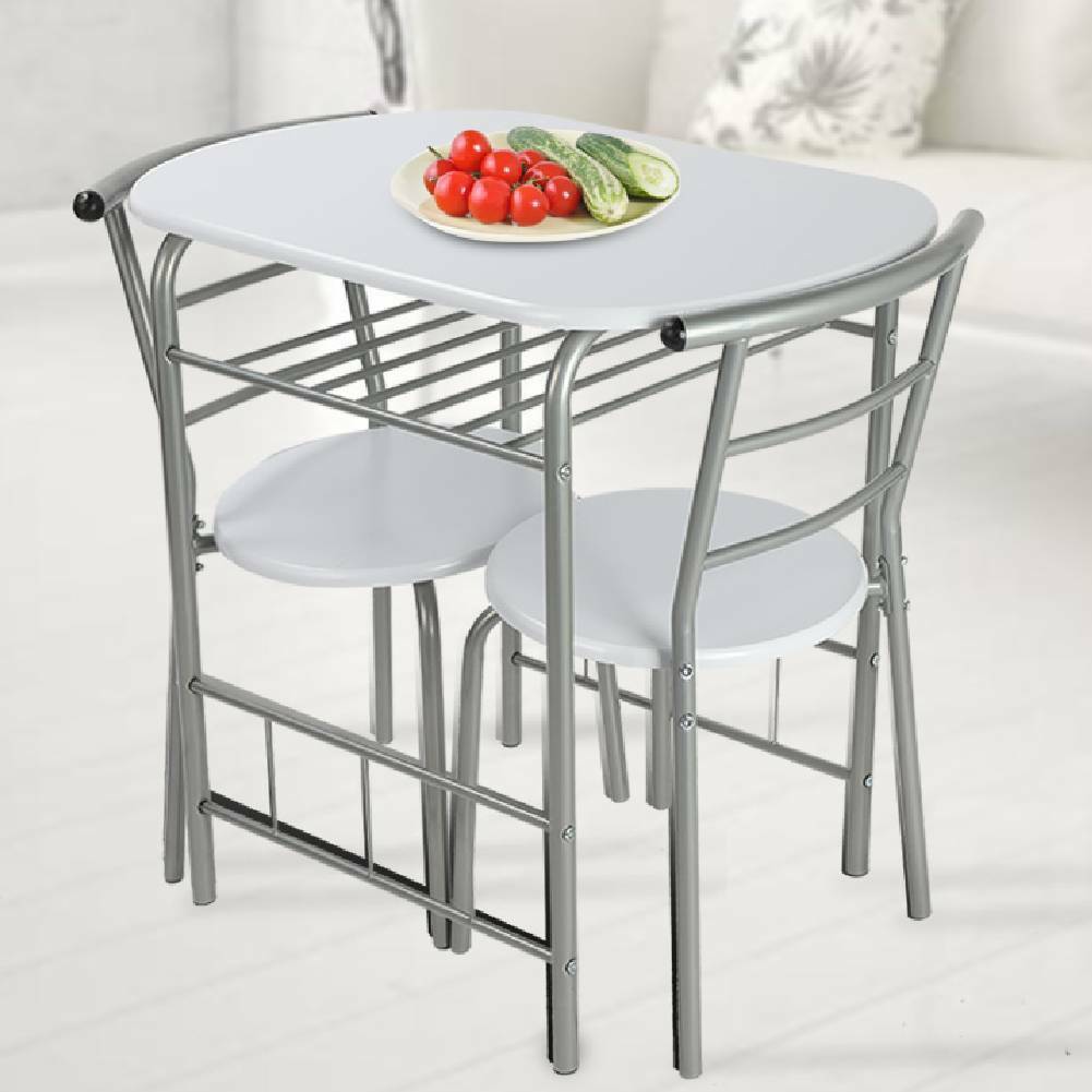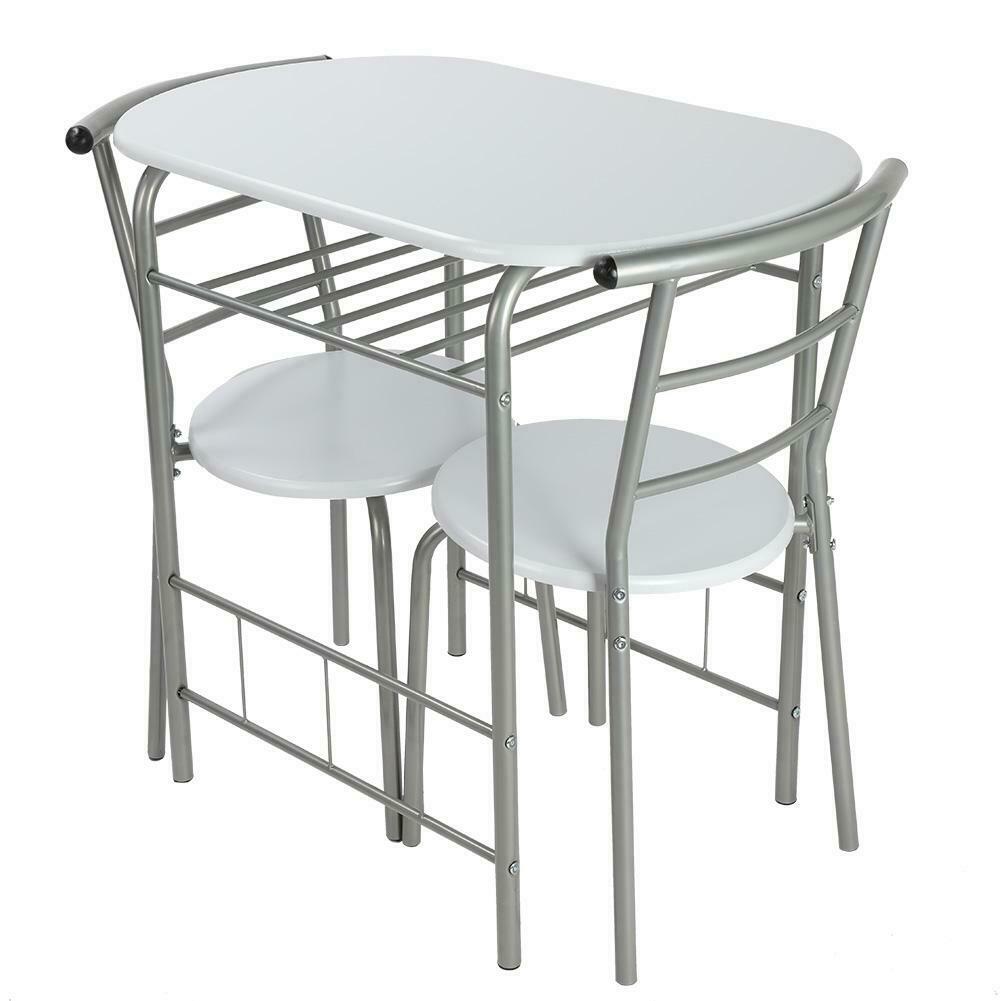 Small Dining 1 Table 2 Chairs Bistro Set Breakfast Kitchen Furniture Metal Frame