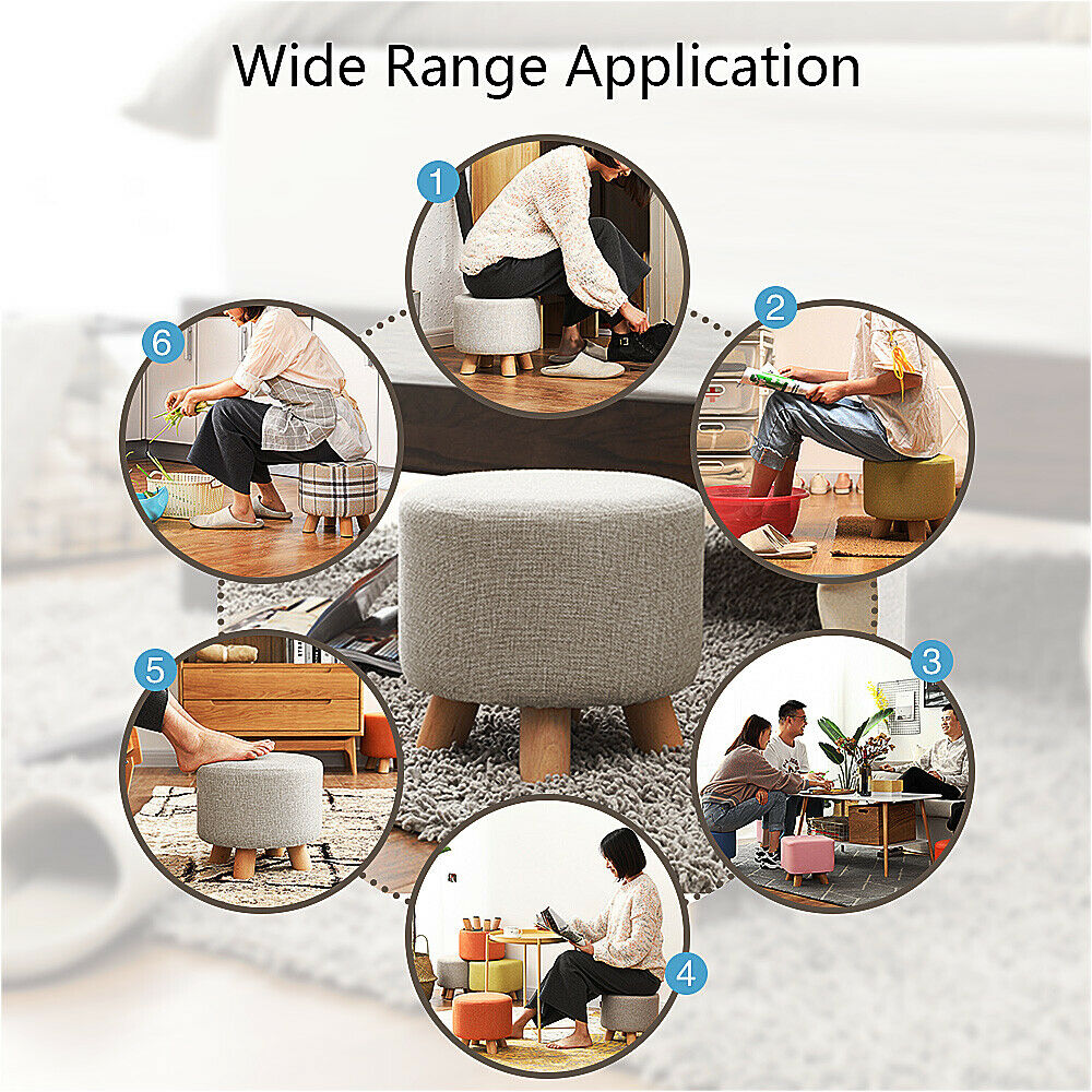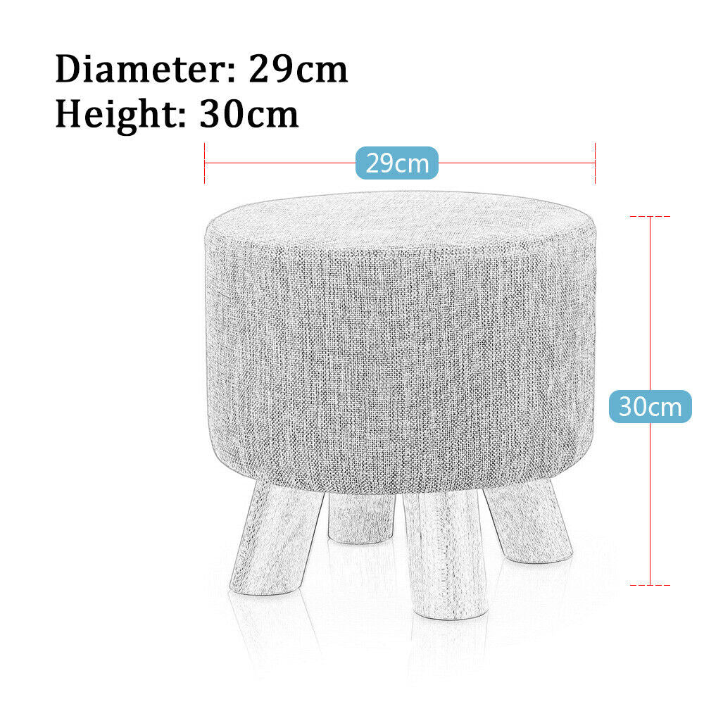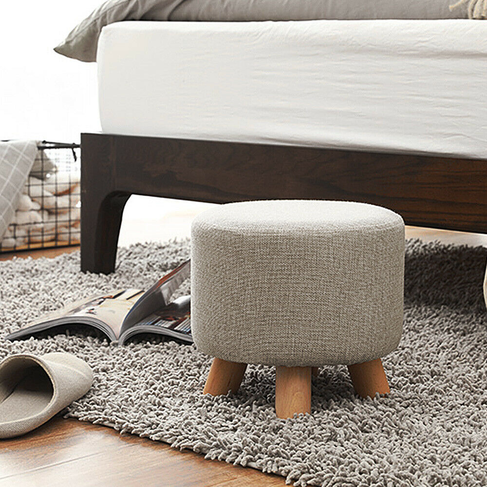 Small Footstool Linen Removable Cover Stool Ottoman Round Pouffe Seat Wooden Leg