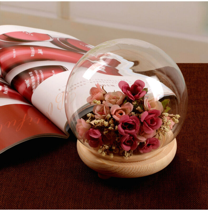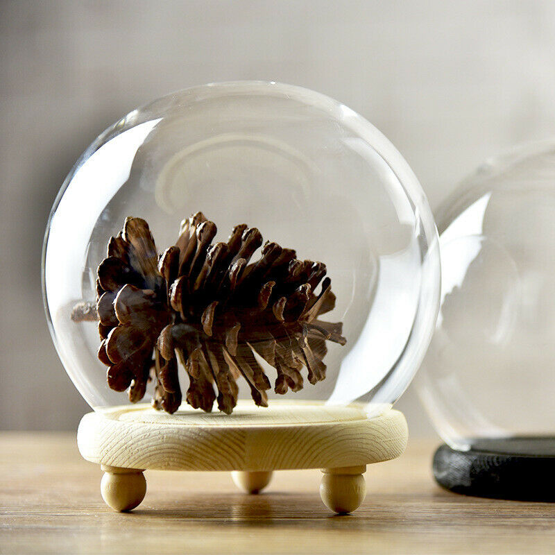 Small/Large Round Glass Ornament Display Dome Cloche Bell Jar with Wooden Base