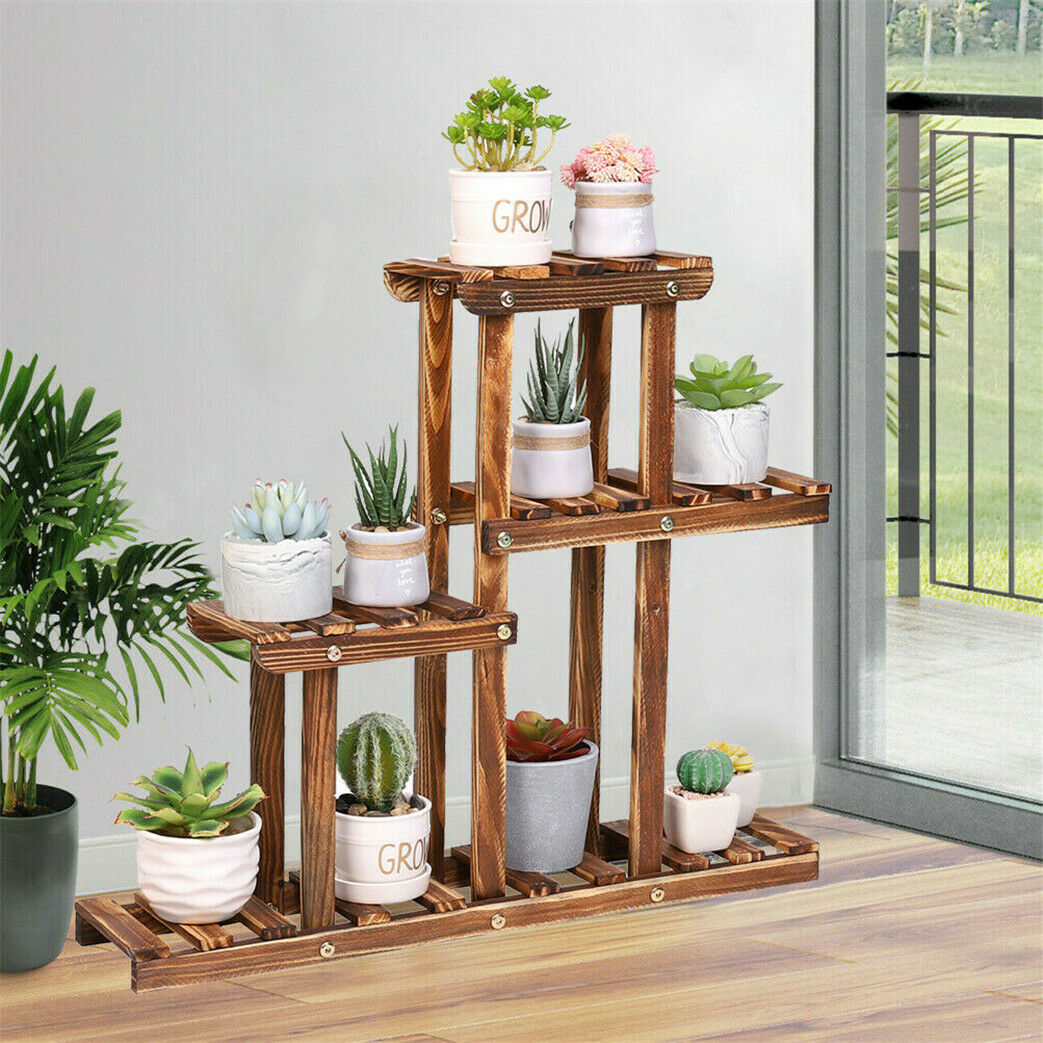 Small Medium Potted Holder Wood Plant Stand Indoor Outdoor Multiple Flower Rack