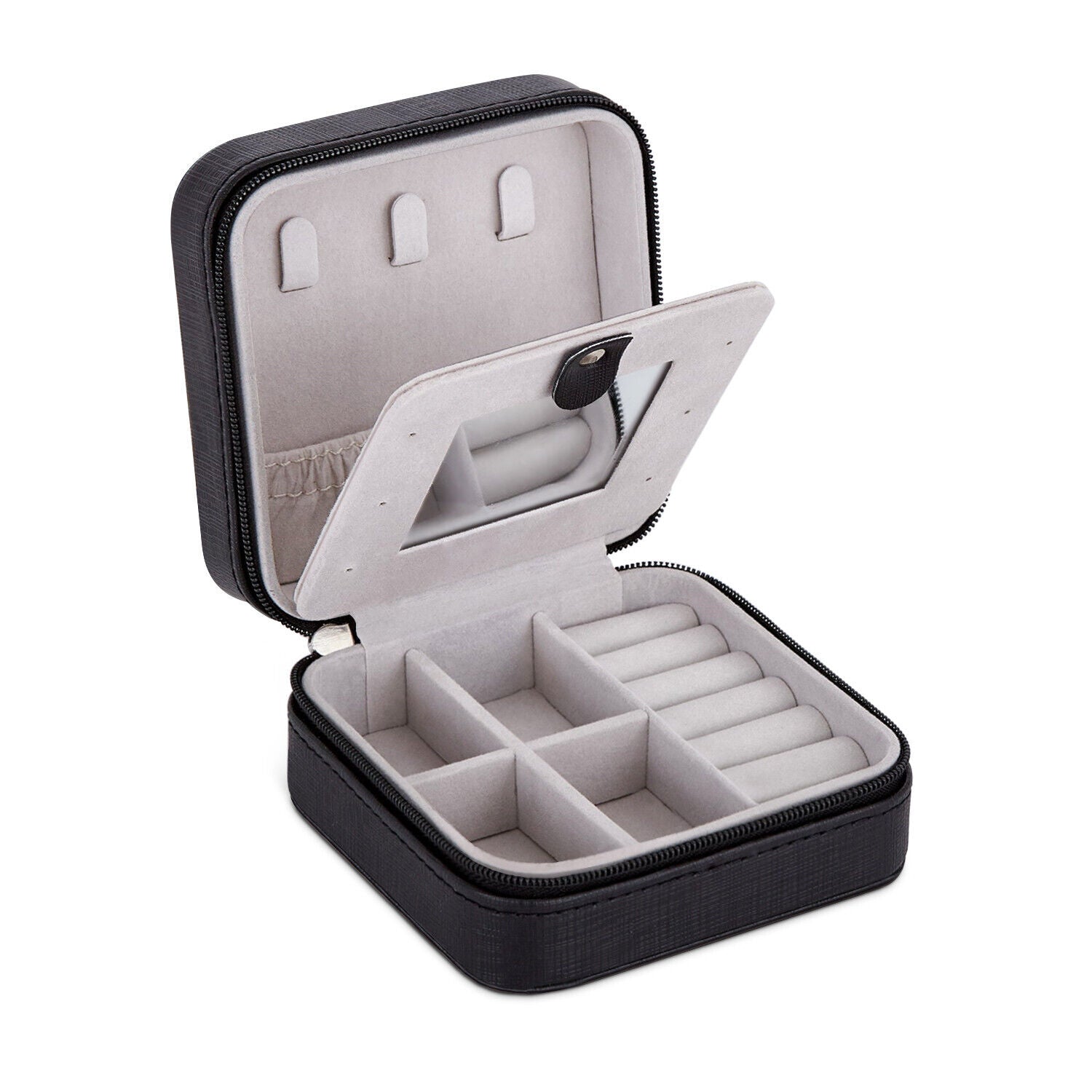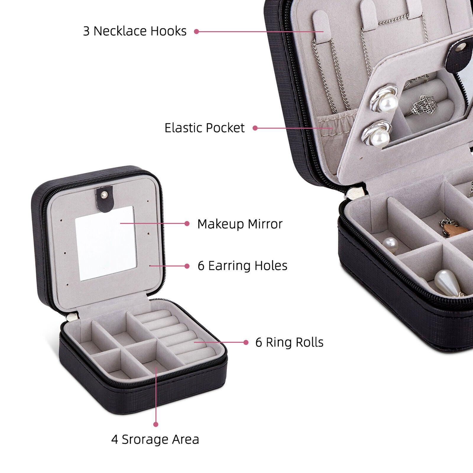 Small Portable Jewellery Box Organizer PU Leather Travel Storage Case w/Mirror
