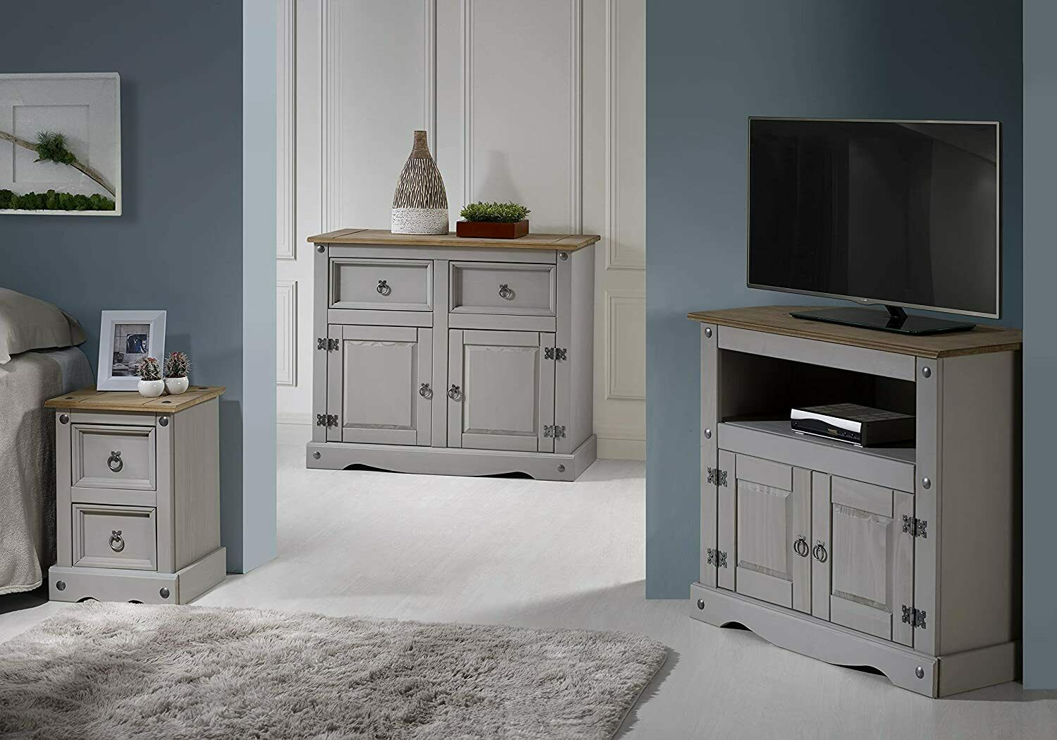 Small Rustic Bookcase Narrow Storage Furniture Side Cabinet Unit Wood Grey Shelf