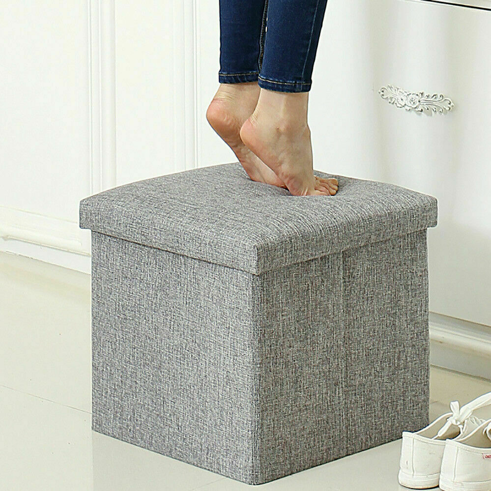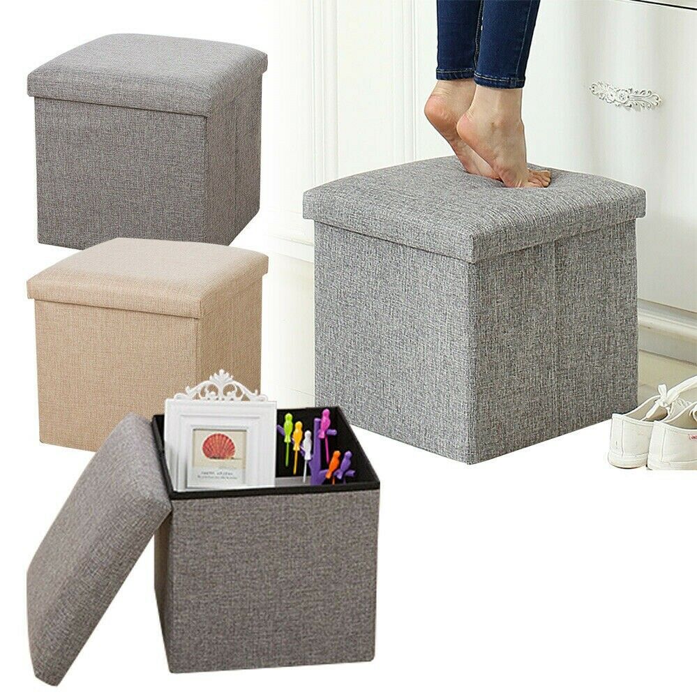 Small Seat Storage Ottoman Folding Pouffee Foot Stool Cubed Toys Box For Bedroom